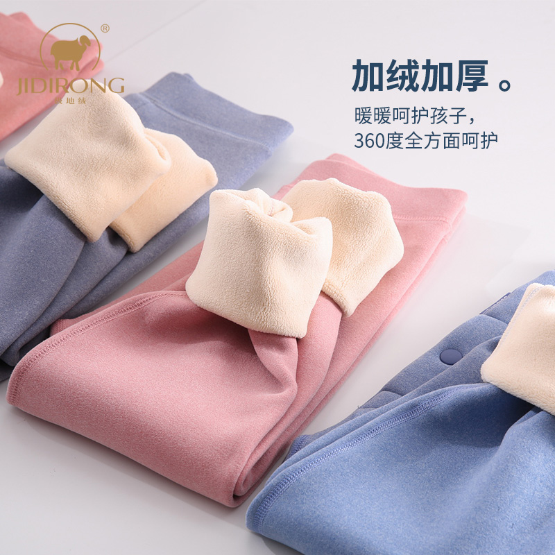 秋冬儿童一体羔绒保暖裤男童加绒加厚棉裤女中大童高腰宝宝秋裤