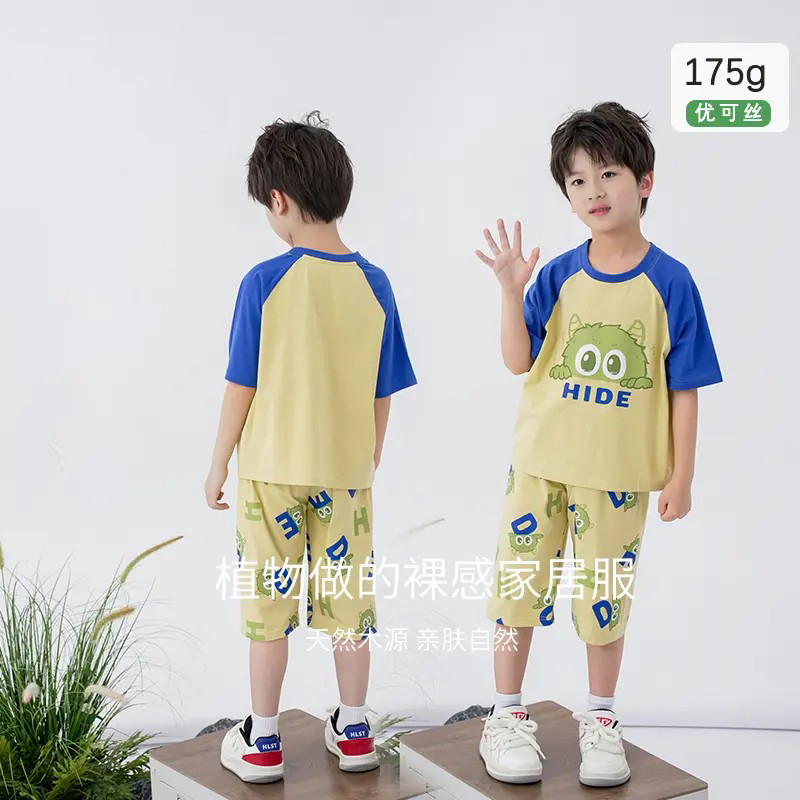 【肖恩专享】儿童夏季睡衣裸感男童短袖卡通中大童家居服套装薄款