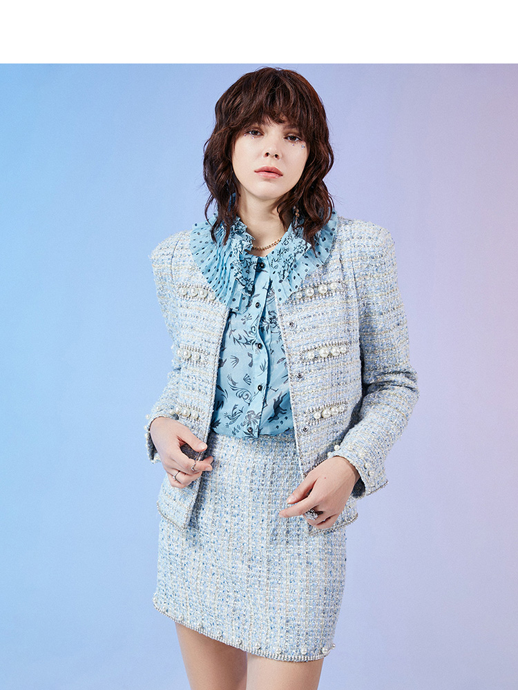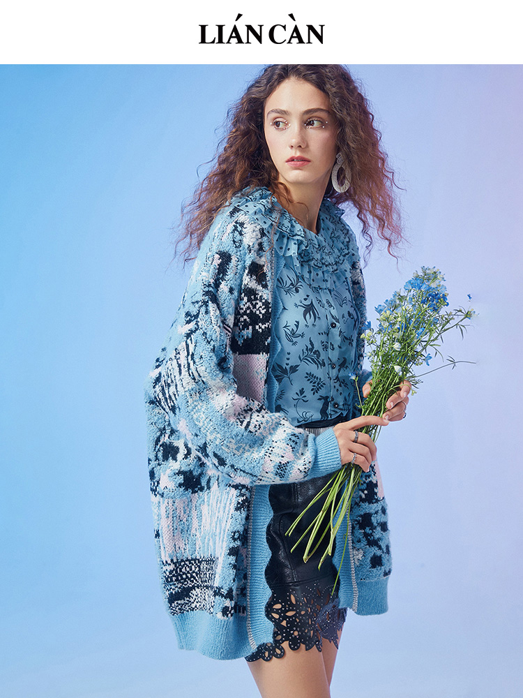 裂帛夏季新商场同款花边领国风印花雪纺衬衫