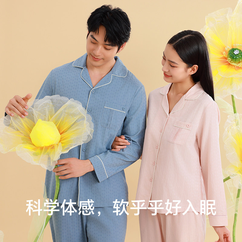 好波春夏新品睡衣女舒适透气梭织长袖长裤家居服男大码睡衣HJ2519