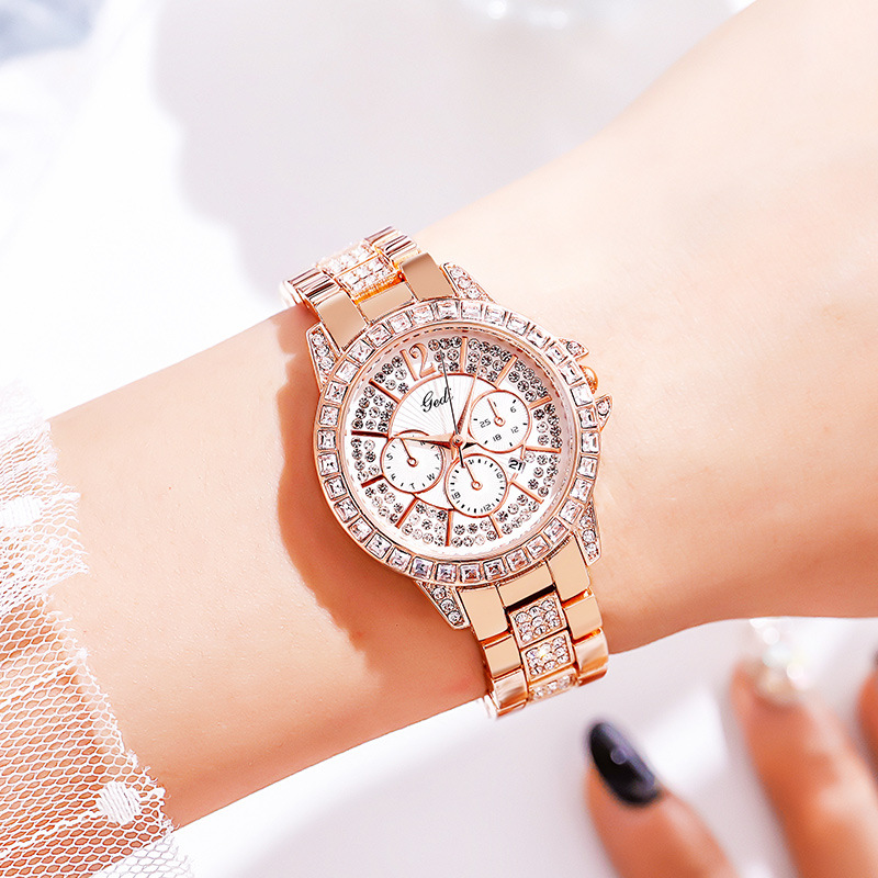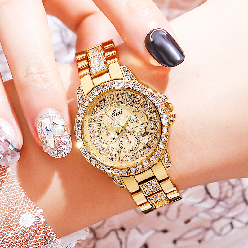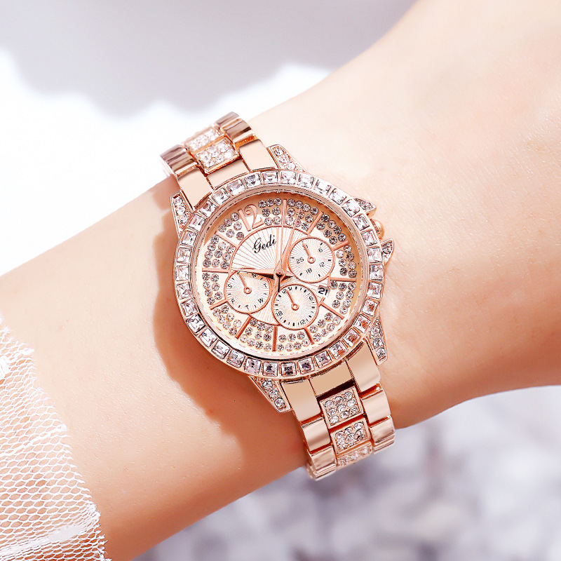 瑞士正品新款全自动满钻女表潮流时尚休闲钢带防水时装女学生手表