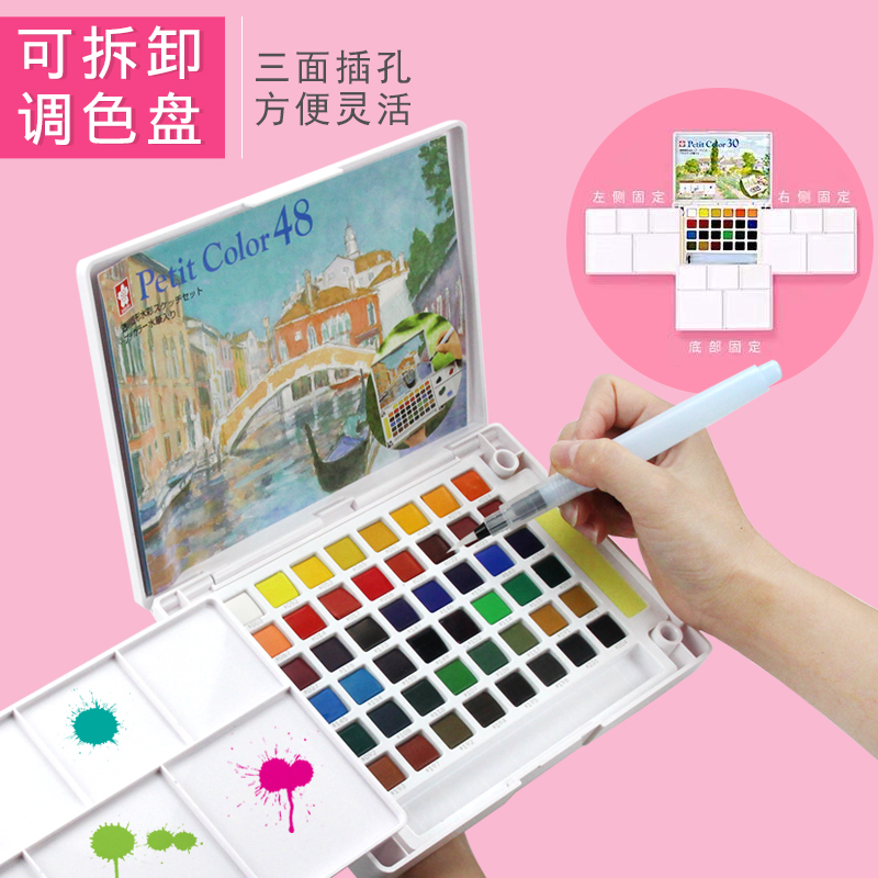 日本SAKURA樱花固体水彩颜料套装泰伦斯24/36/48色初学者手绘美术专业写生珠光水彩便携绘画水粉透明水彩颜料