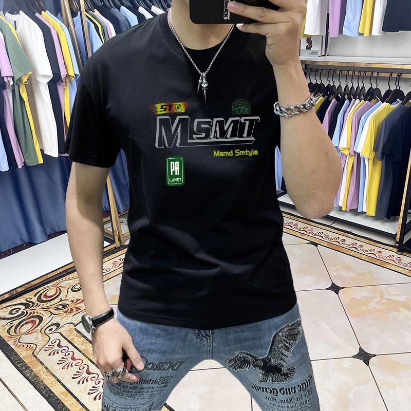 短袖t恤男夏季新款修身潮流百搭字母印花帅气半袖上衣体恤衫