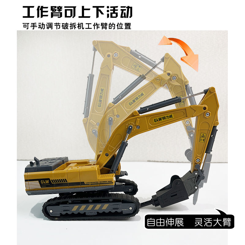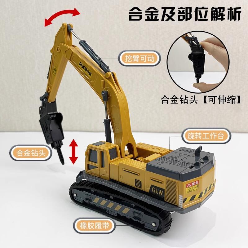 合金破碎锤玩具钻地机仿真挖掘机破拆机抓木机模型儿童履带工程车