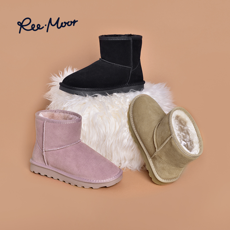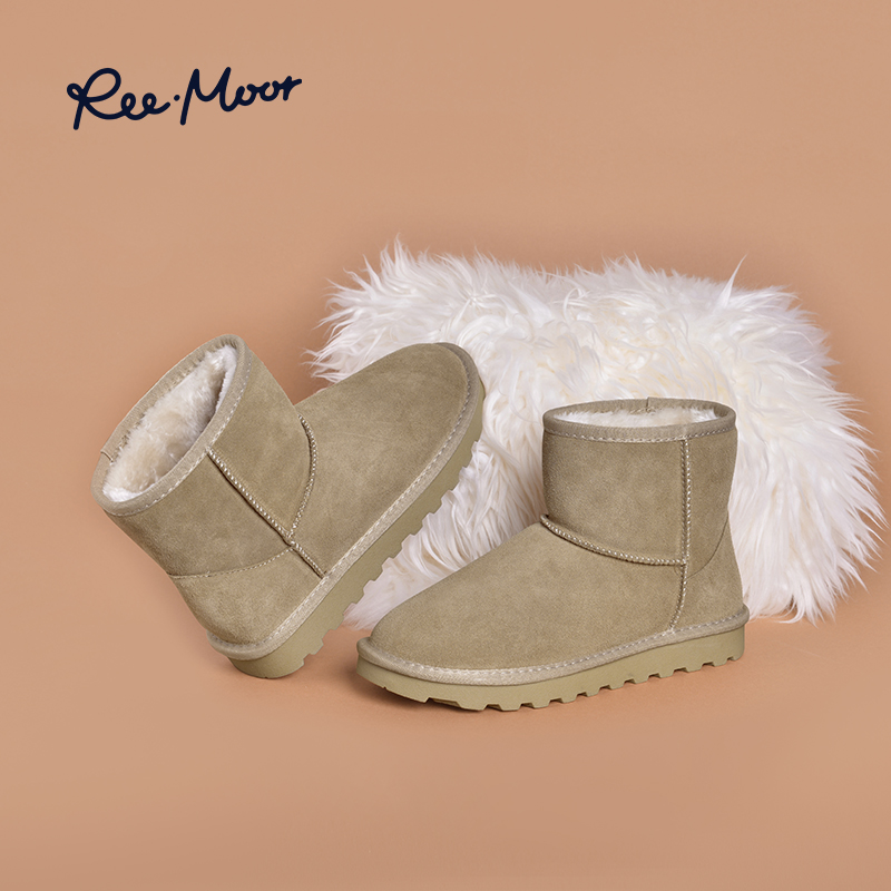 reemoor棉鞋女冬加绒雪地靴女2022年新款冬季绒面大棉鞋短筒睿慕