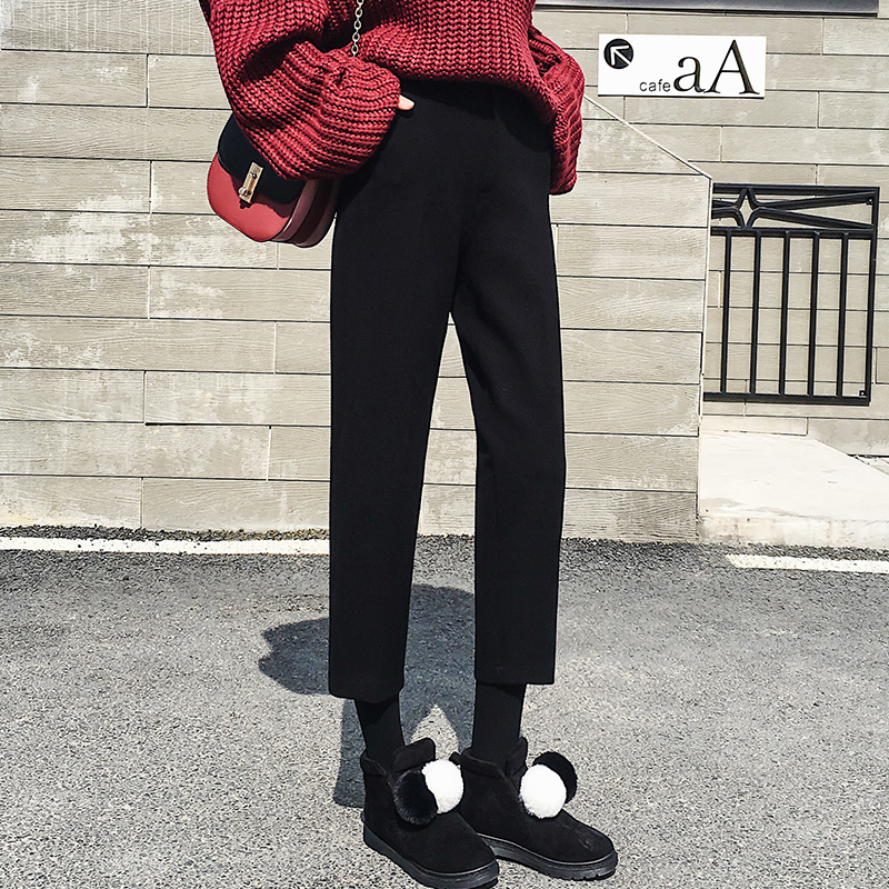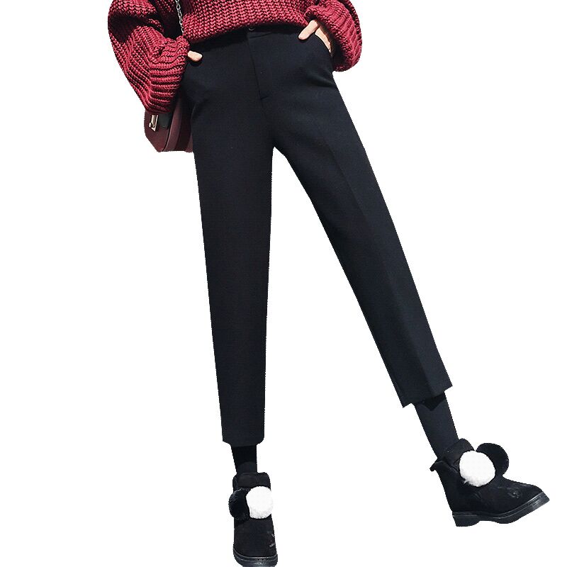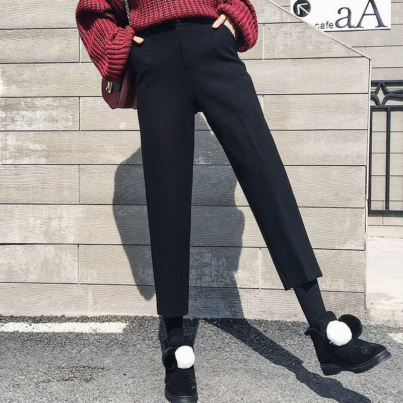 毛呢裤子女九分直筒西装2022新款秋冬韩版宽松阔腿哈伦小脚萝卜裤