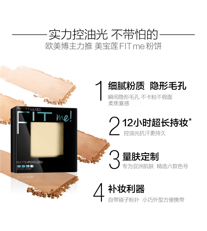 屈臣氏美宝莲定制柔雾粉饼fitme细腻粉质雾面吸油隐形毛孔8.5g