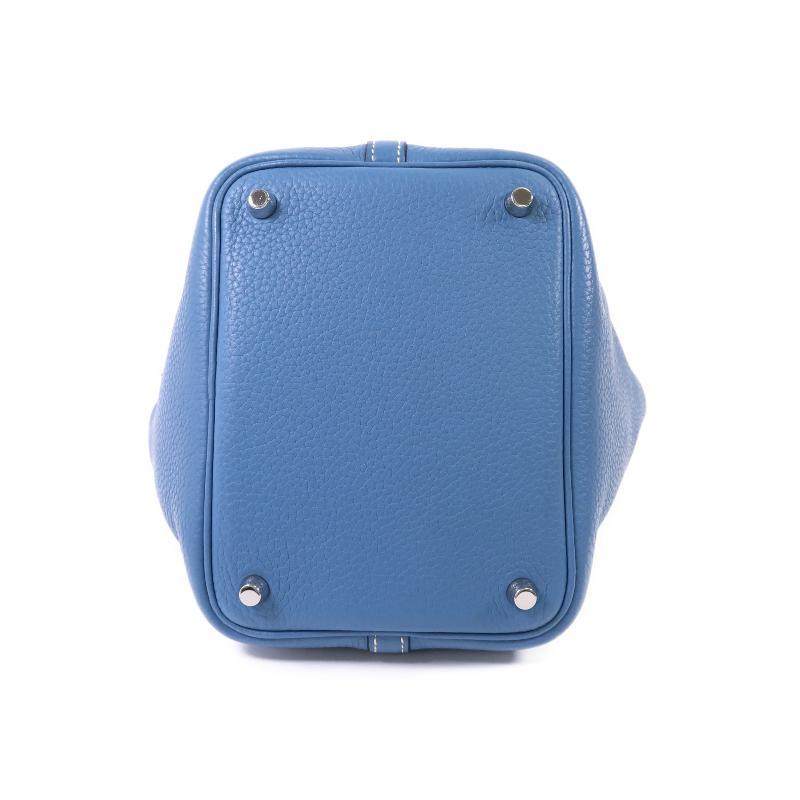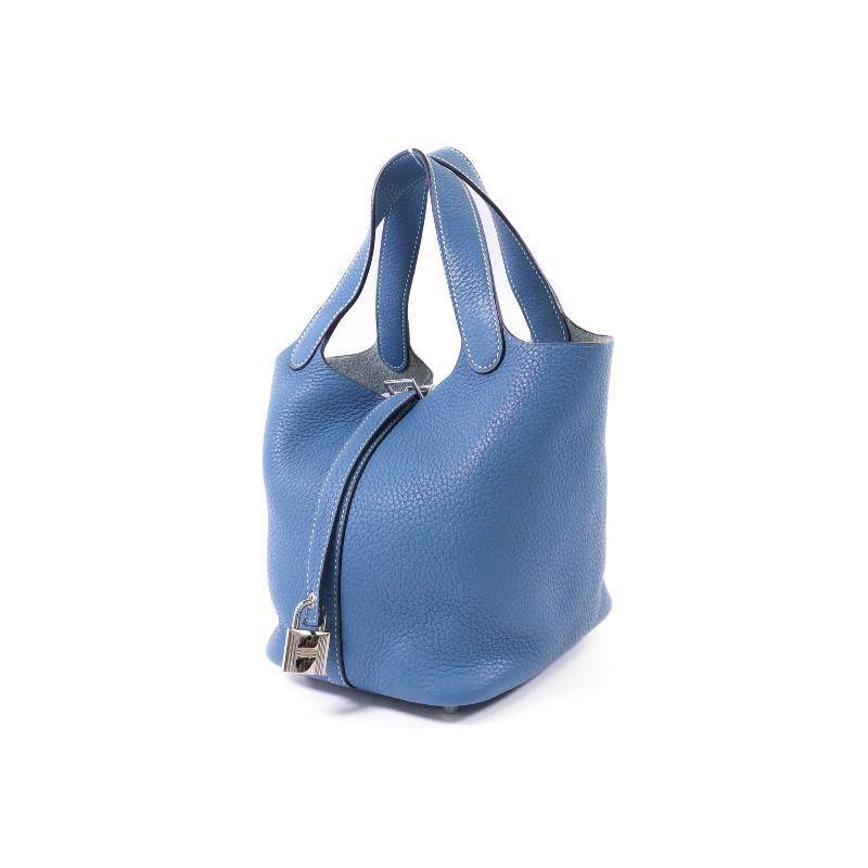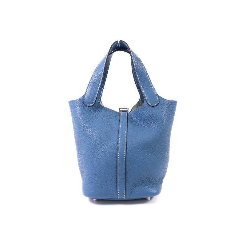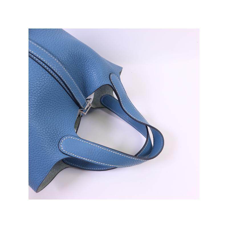中古Hermes爱马仕女包A级95新Picotin PM菜籃子PM牛皮托特包蓝色