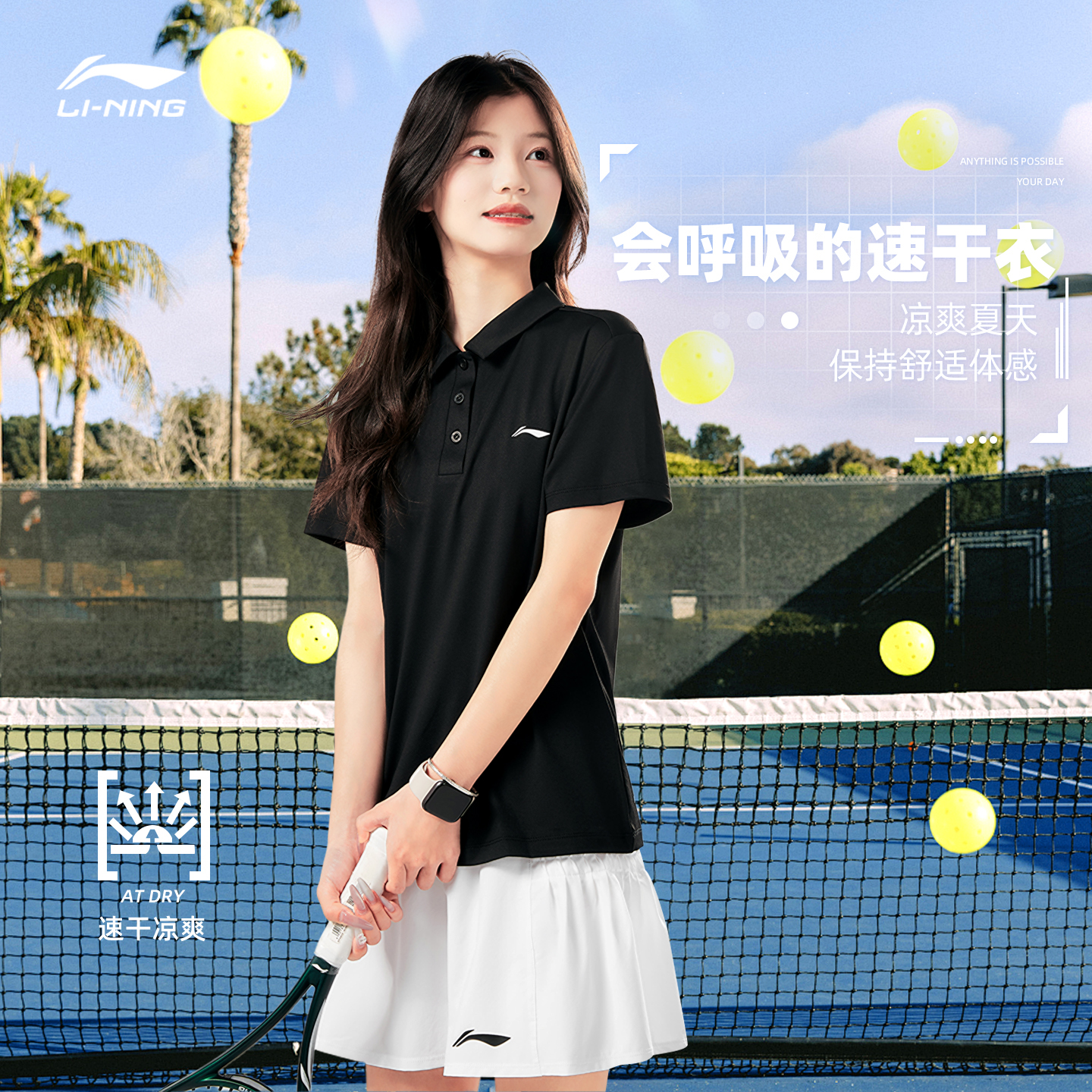 李宁短袖polo衫女士2025夏季新款