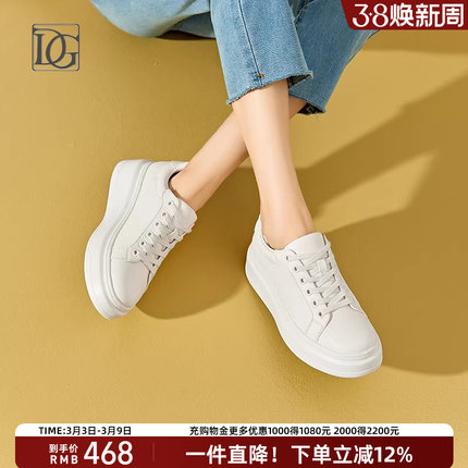 DG新款真皮厚底小白鞋女