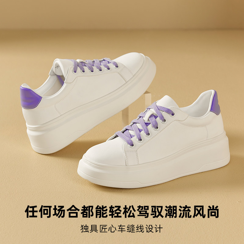 【商场同款】厚底小白鞋春季新款牛皮松糕增高轻便休闲鞋板鞋