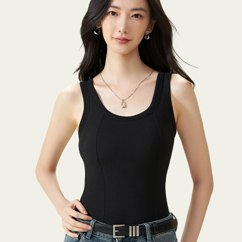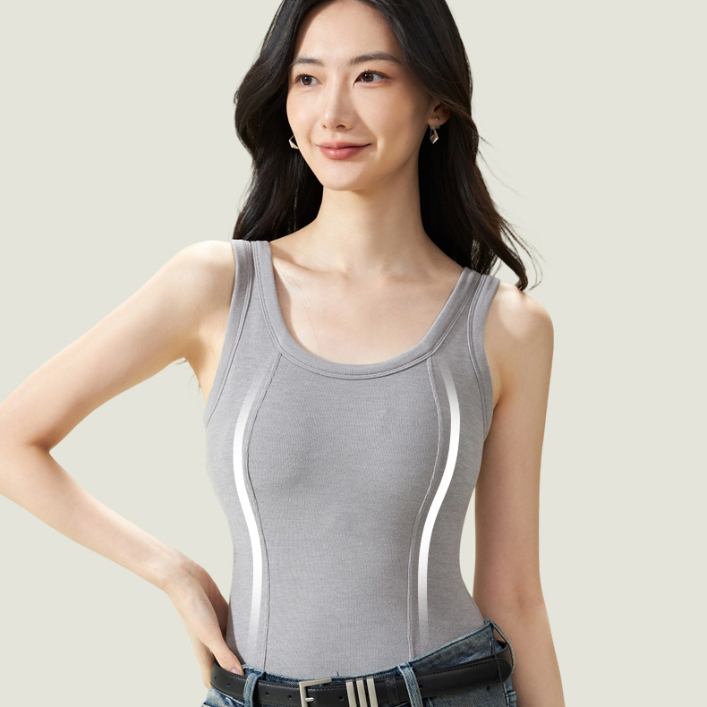 羊绒蚕丝粗针人鱼线保暖背心无袖女带胸垫一体式免穿文胸内搭8889