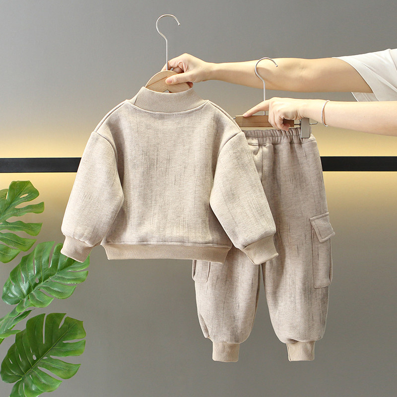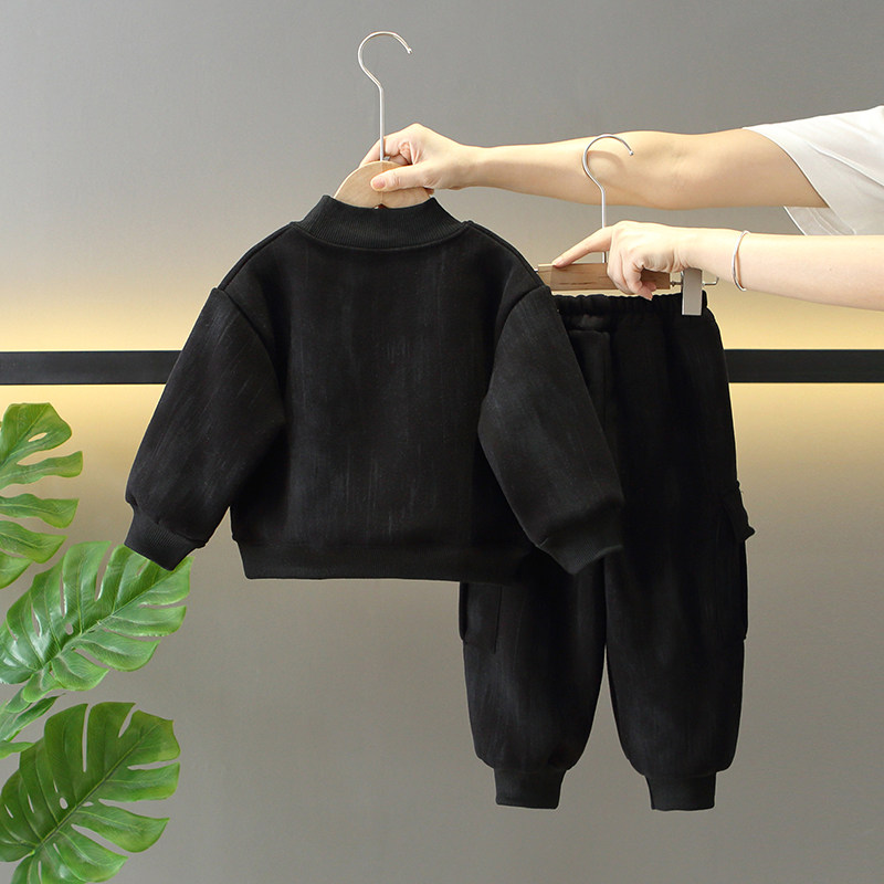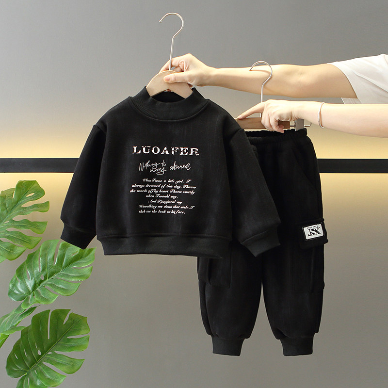 男童卫衣套装加绒加厚儿童秋冬装2025新款宝宝帅气冬季时髦两件套