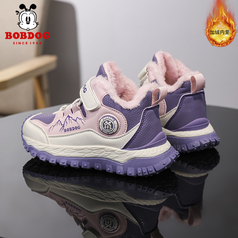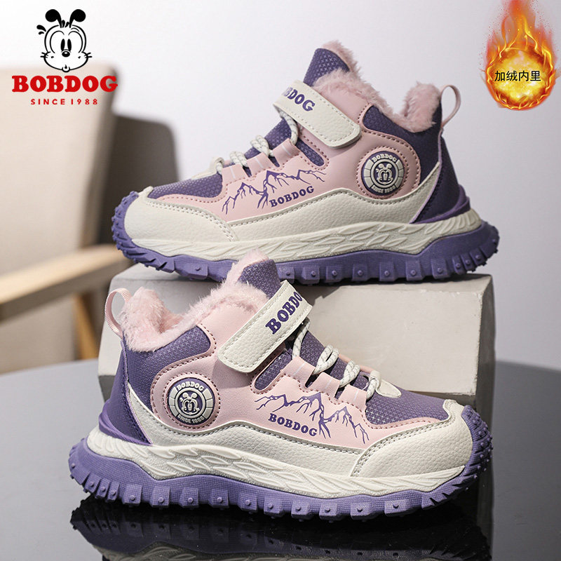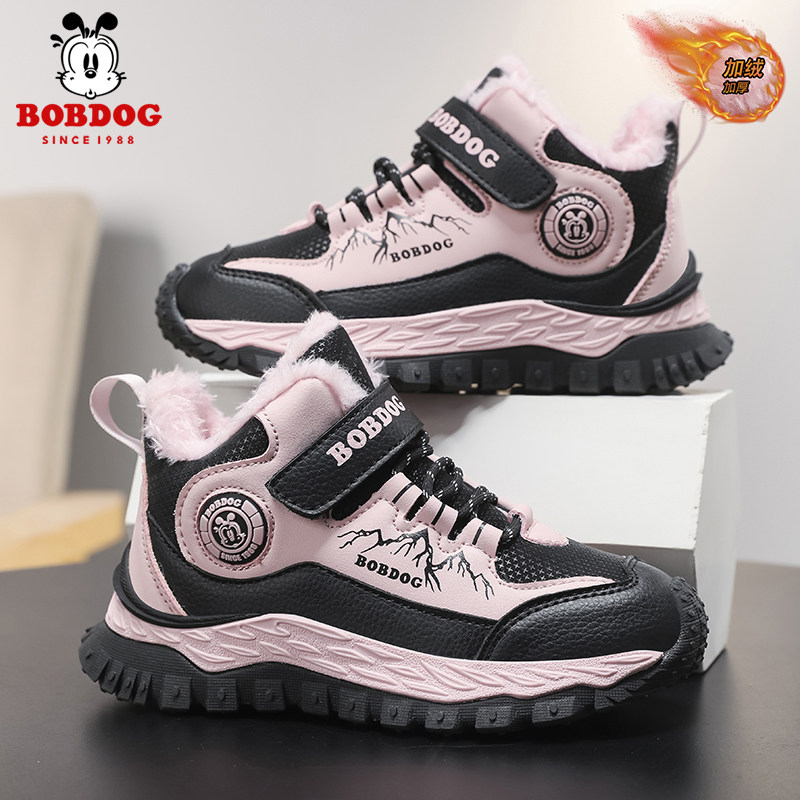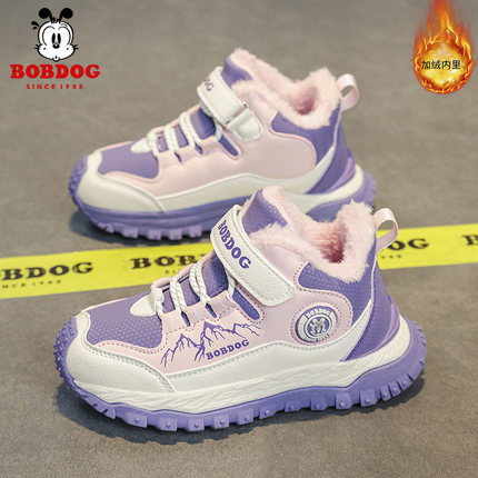 巴布豆童鞋女童棉鞋冬季加绒鞋子2025新款加厚保暖大棉儿童运动鞋
