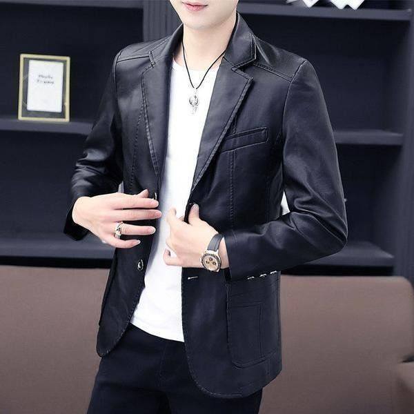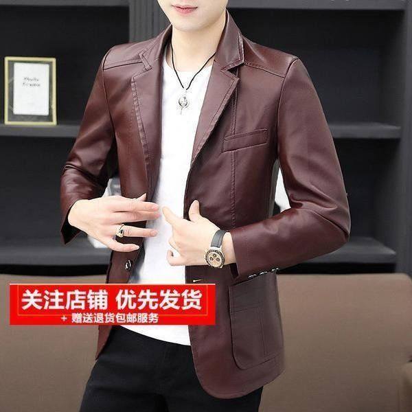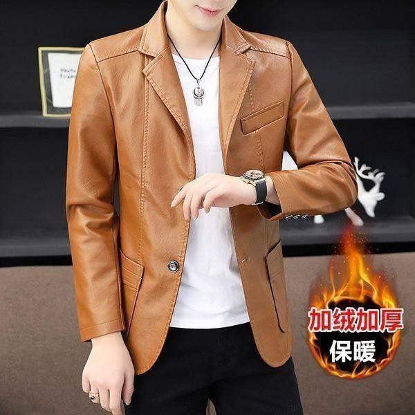 男士真皮皮衣小西服绵羊皮夹克青年韩版修身休闲外套潮翻领西装男