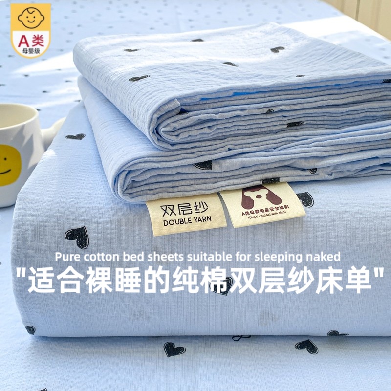 A类纯棉床单单件2025新款加厚全棉双层纱被单宿舍单人枕套三件套3