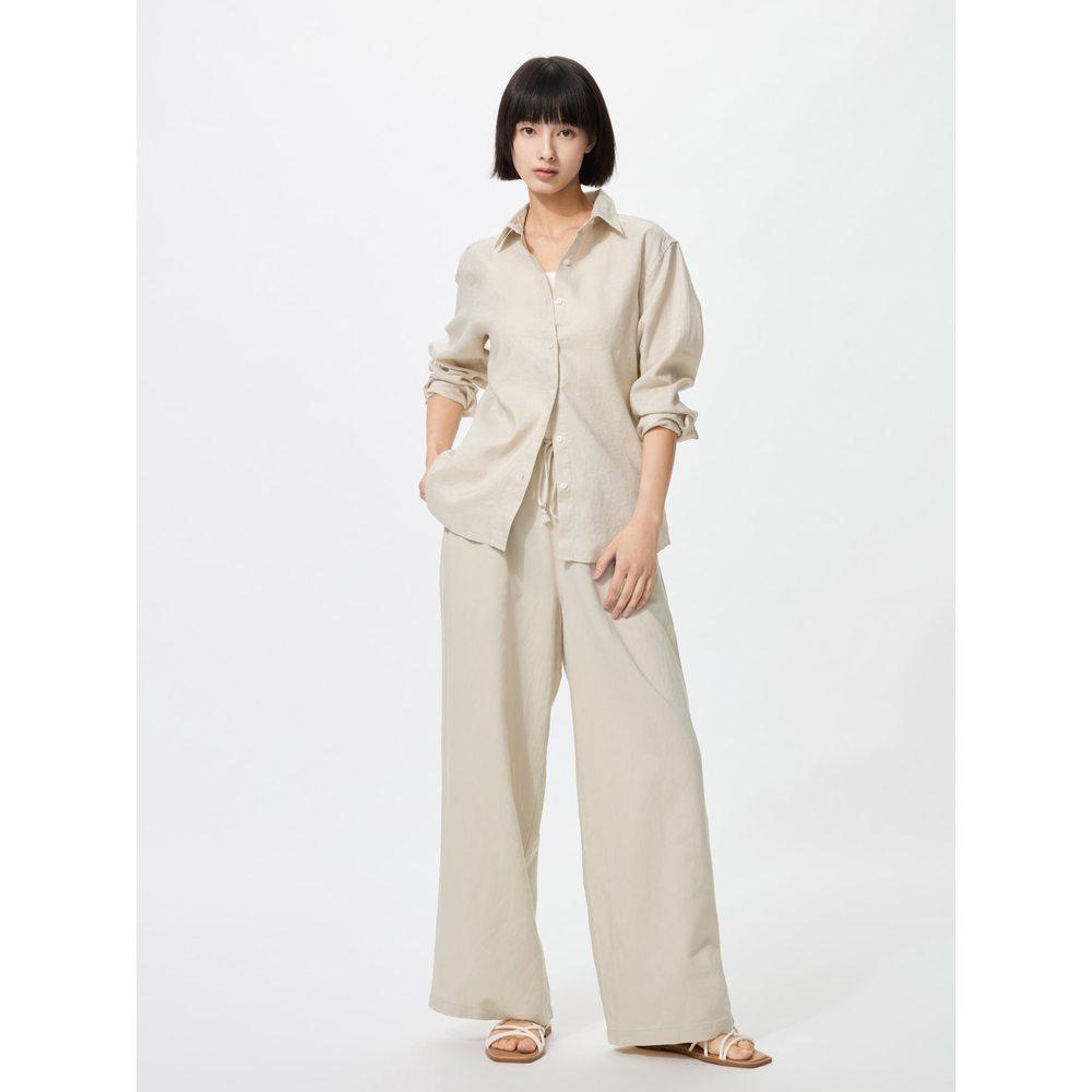 日潮跑腿UNIQLO优衣库 亚麻混纺休闲裤 482246