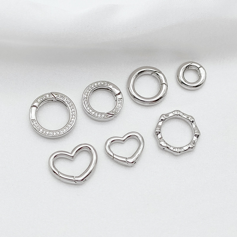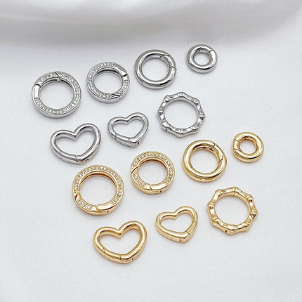 强保色14K包金白K圆形爱心弹簧扣