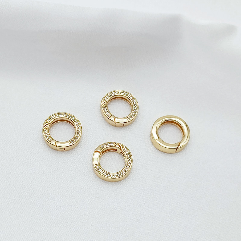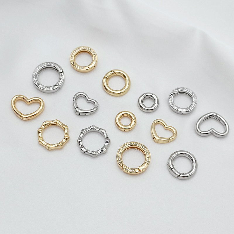 强保色14K包金白K镶锆圆形爱心弹簧扣手工DIY手链项链收尾链接扣