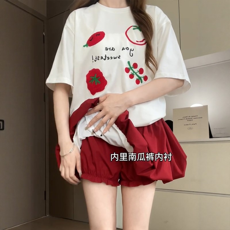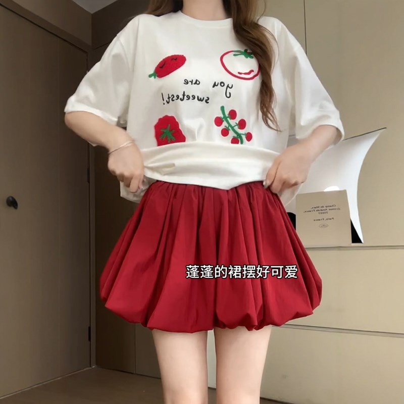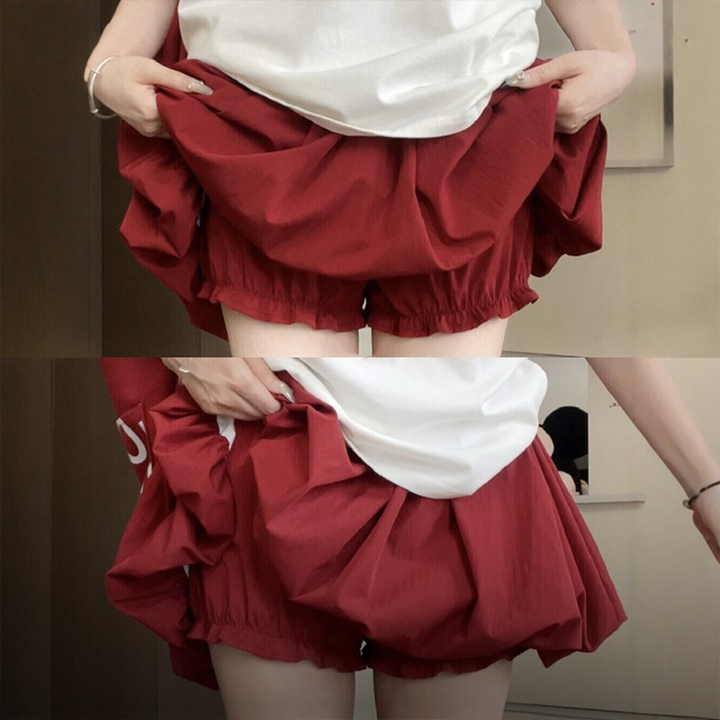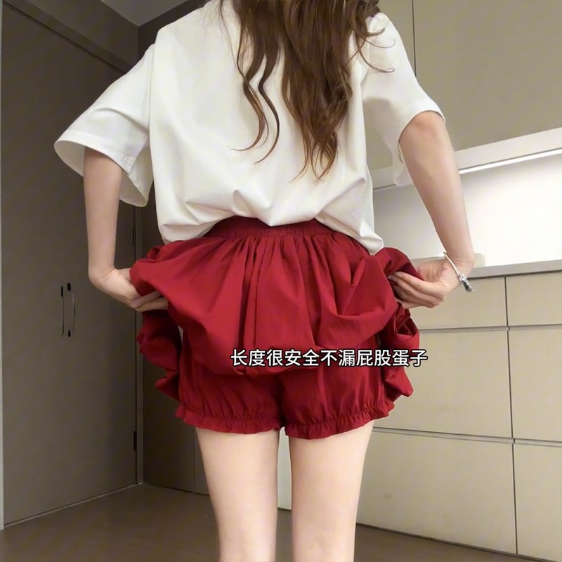红色蓬蓬花苞裙裤大码胖mm夏薄款防走光半身小个子巨好看a字短裙