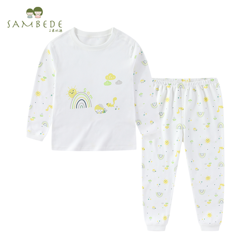 三木比迪内衣套男女童纯棉双面布2025秋衣裤宝宝家居服睡衣商场款