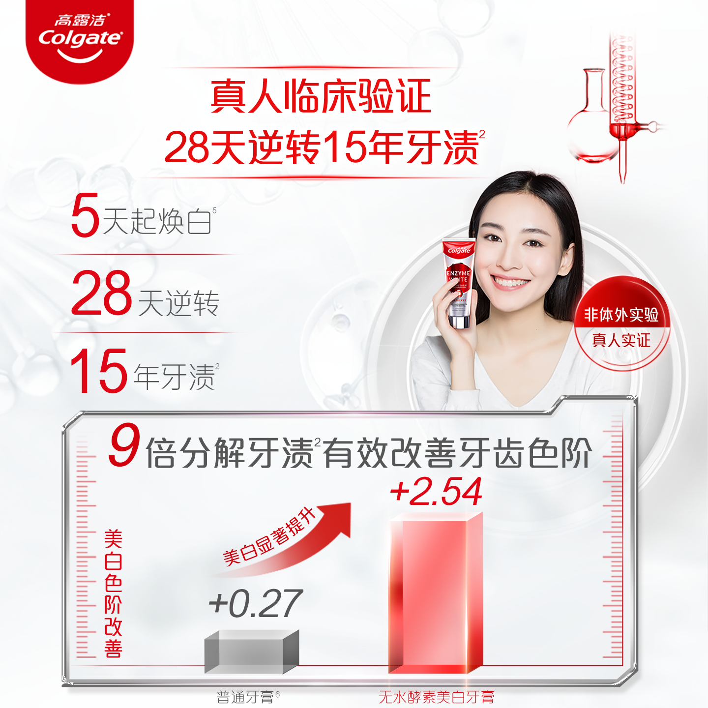 【孙颖莎推荐】高露洁红管无水酵素牙膏美白活性亮白成人去烟渍
