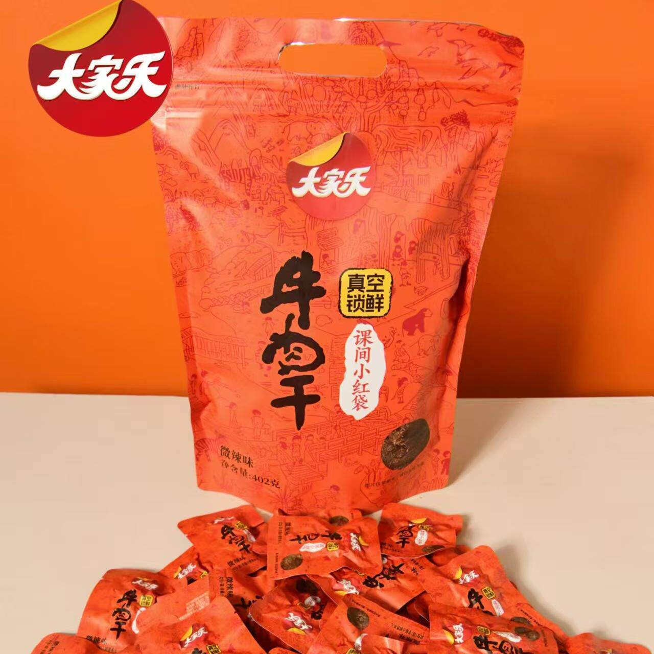 大家乐228g402g课间小红袋牛肉干卤味五香微辣味独立方便休闲零食