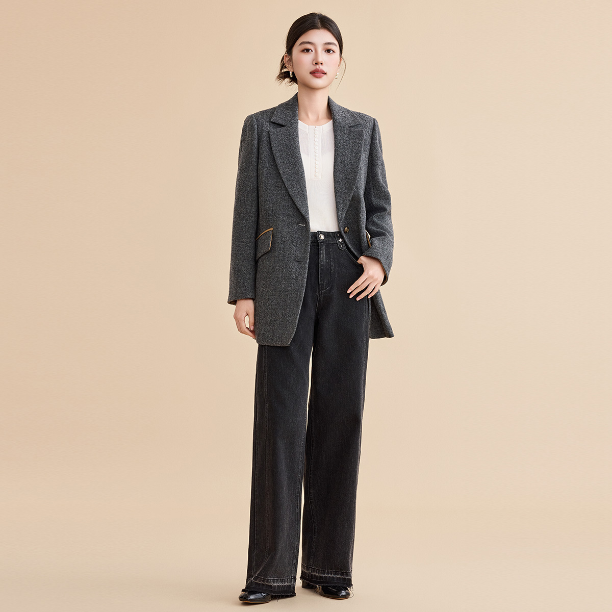 谷邦绵羊毛西装外套女2025秋季新款简约通勤气质宽松显瘦职业西服
