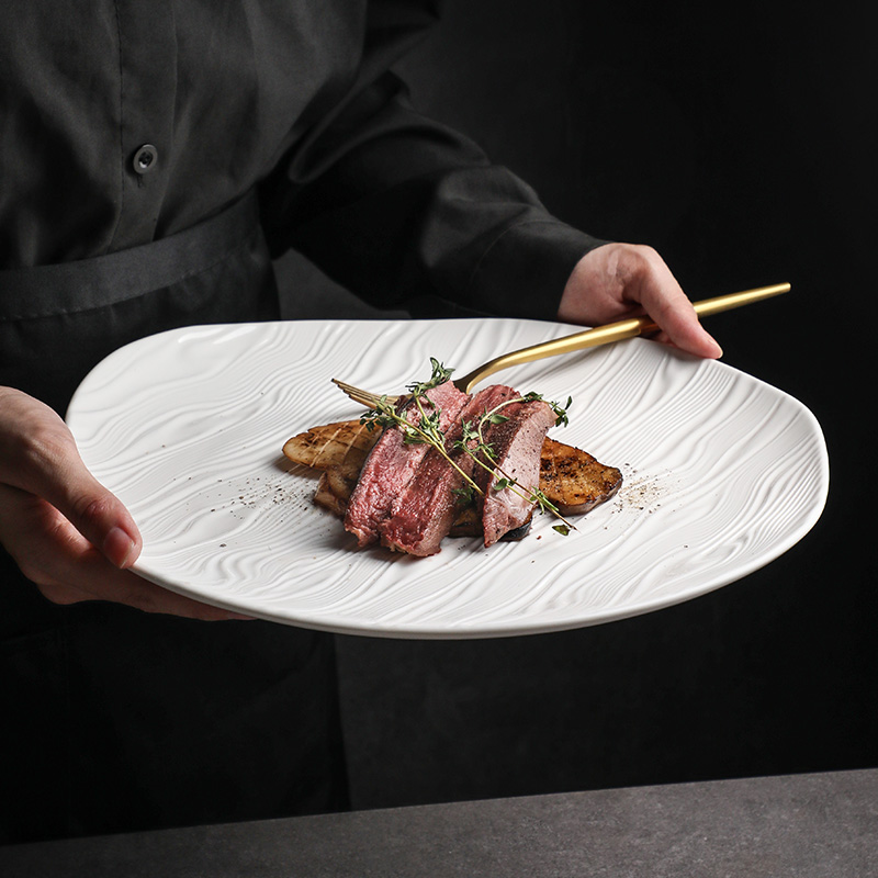 纯白色陶瓷家用盘子装菜盘浅盘不规则盘餐厅酒店商用牛排盘西餐盘