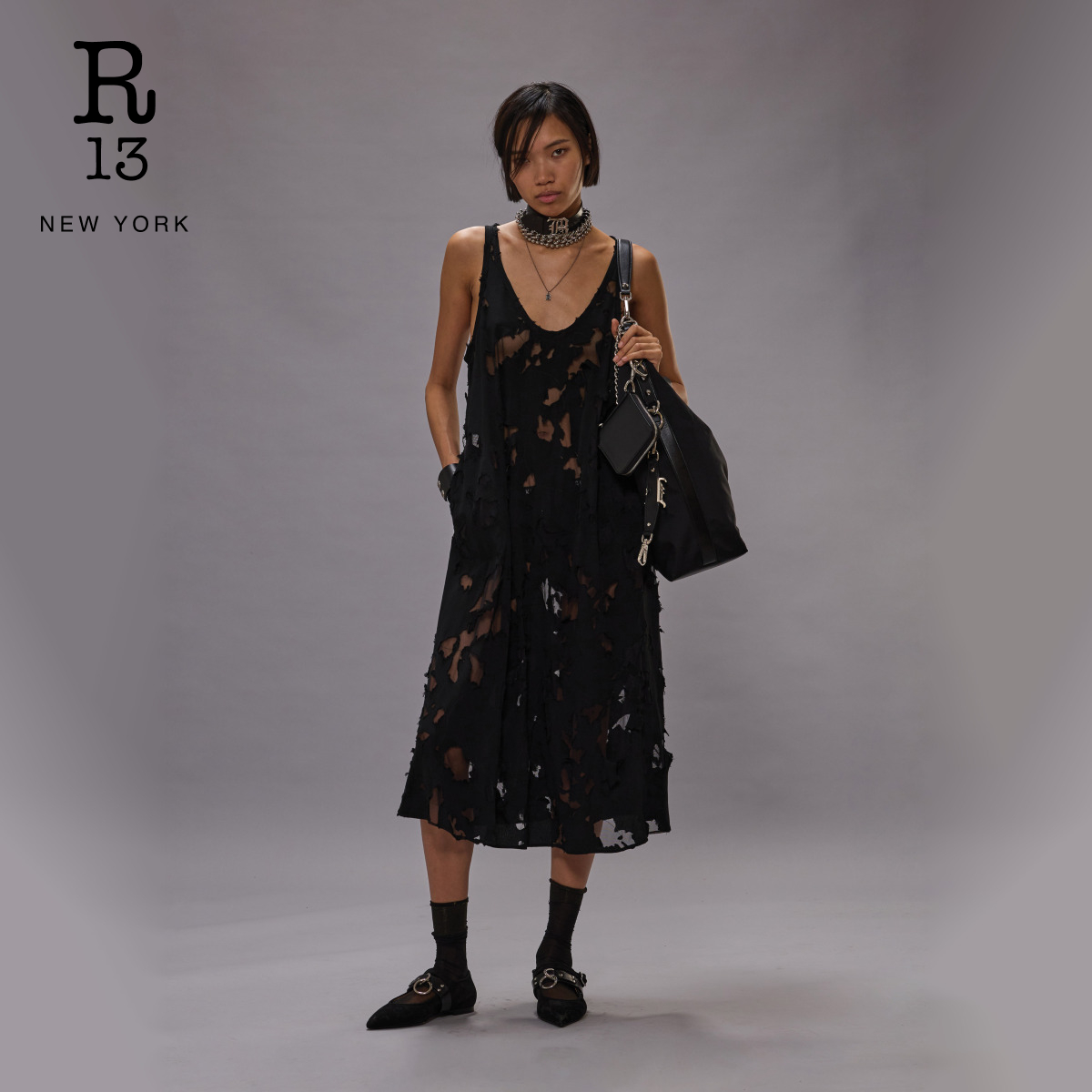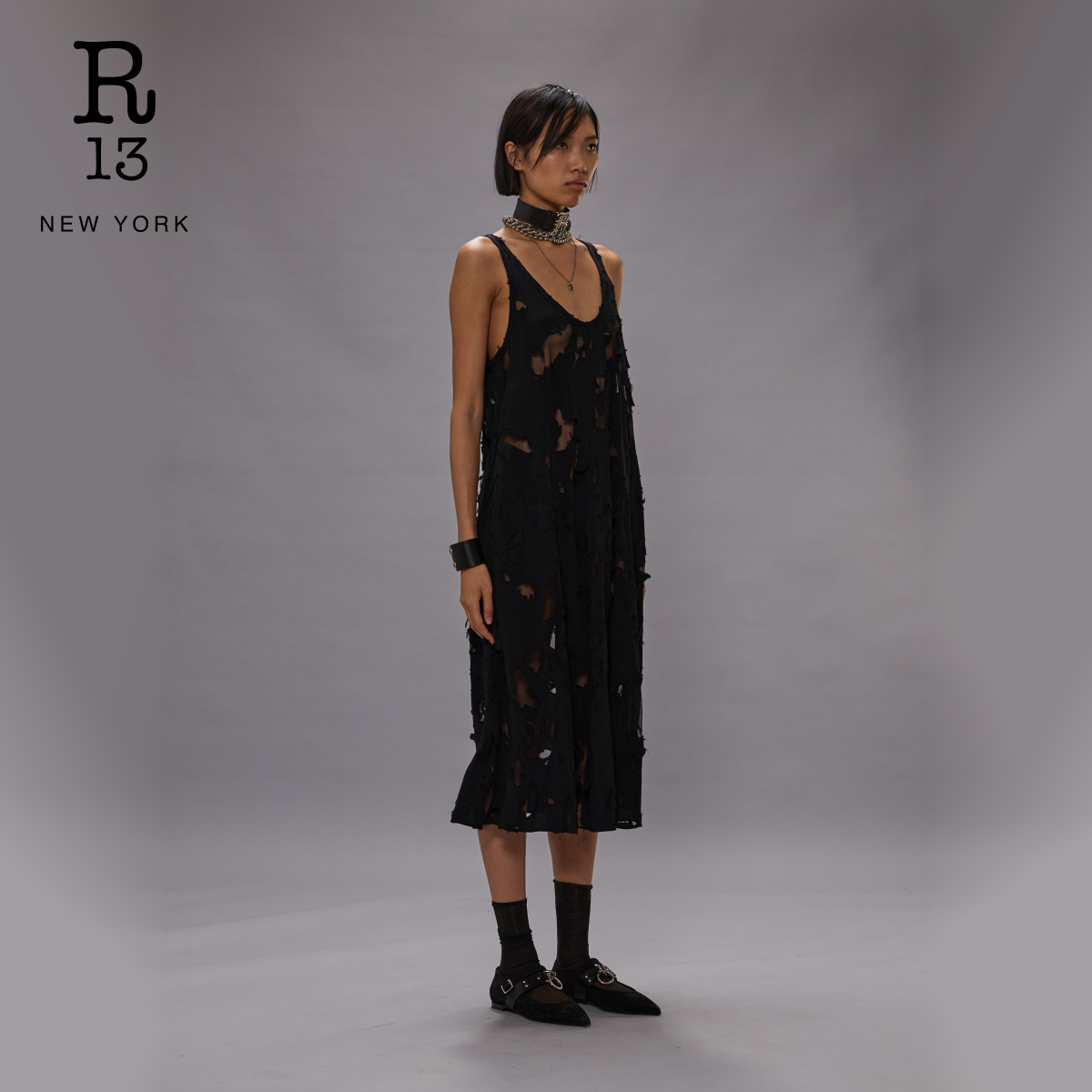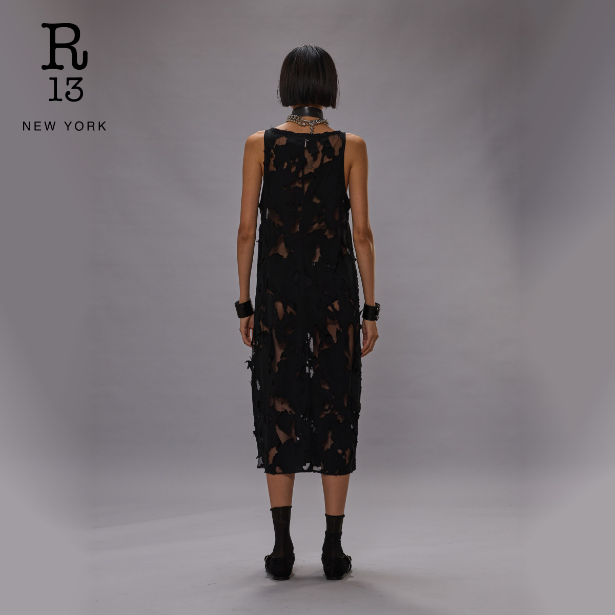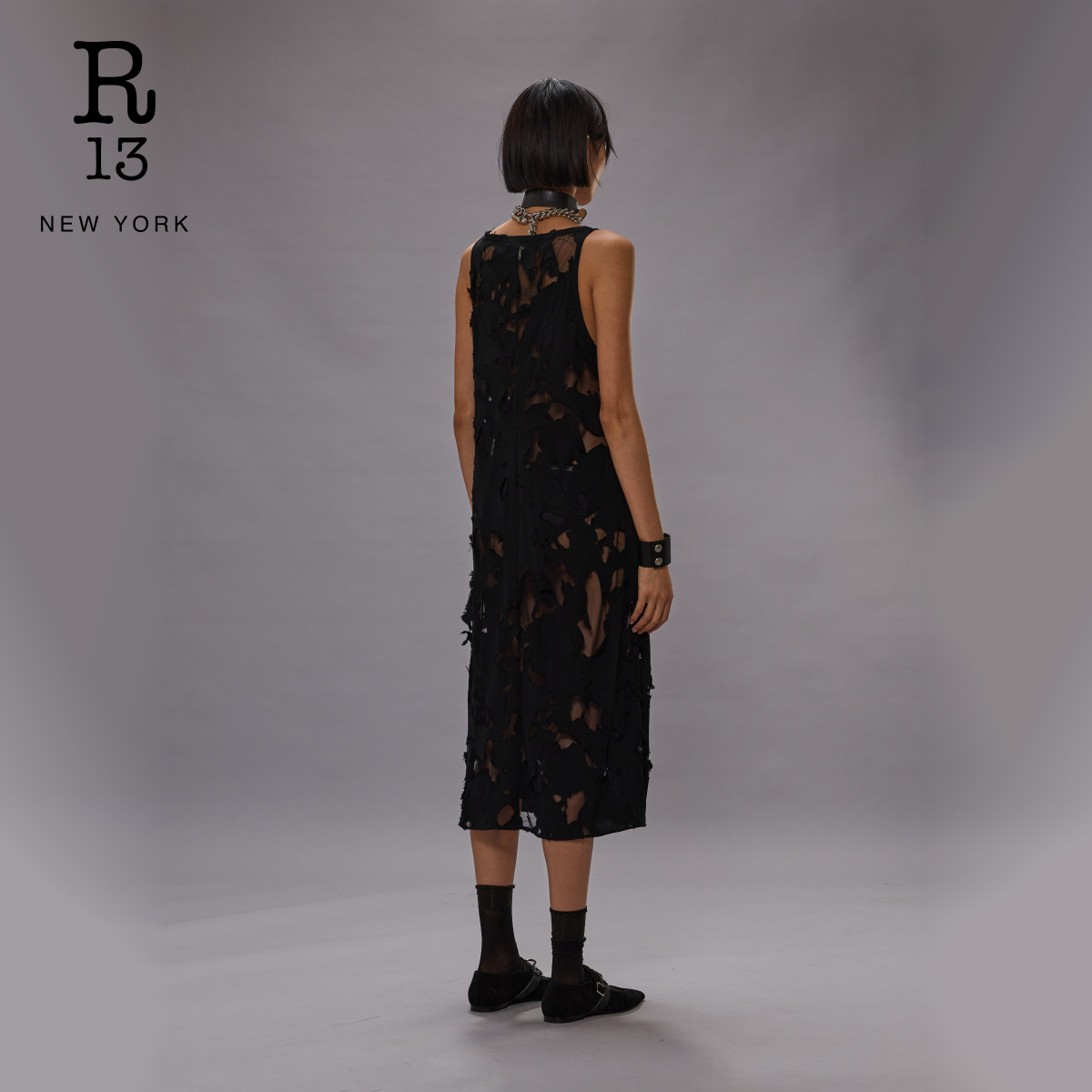 【明星同款】R13 2025秋冬系列 宽松破损解构中长款吊带连衣裙