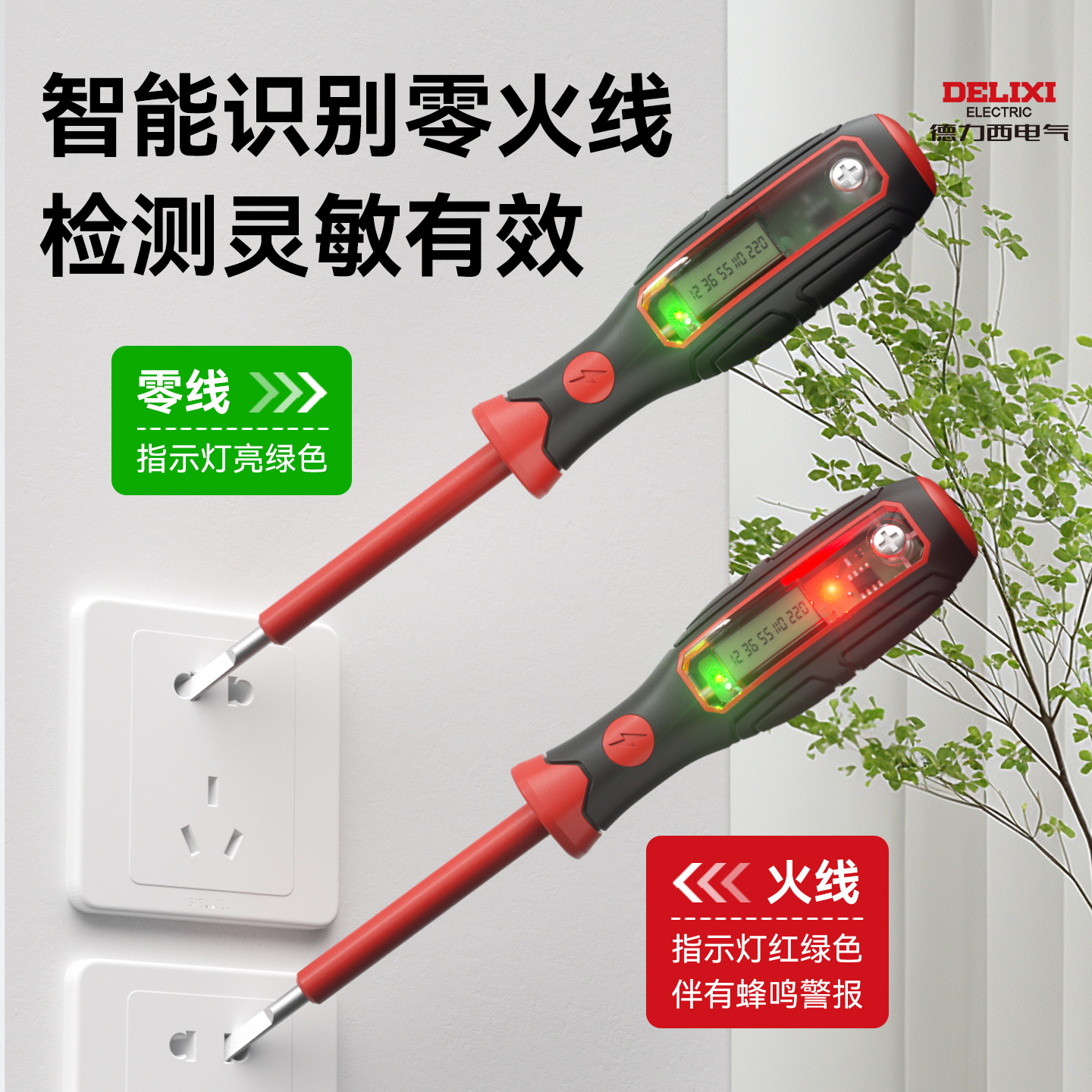 德力西电笔电工专用测断线漏电家用试电笔智能感应数显测电笔新款
