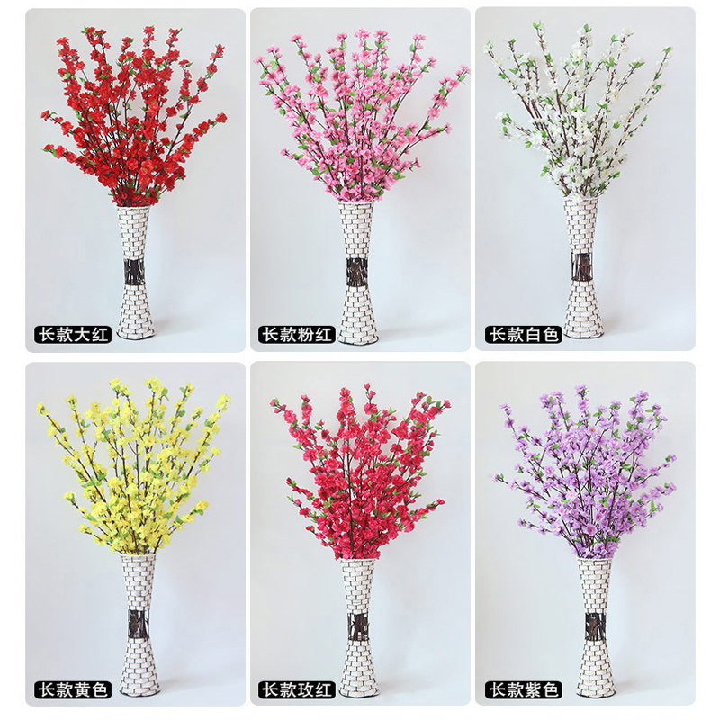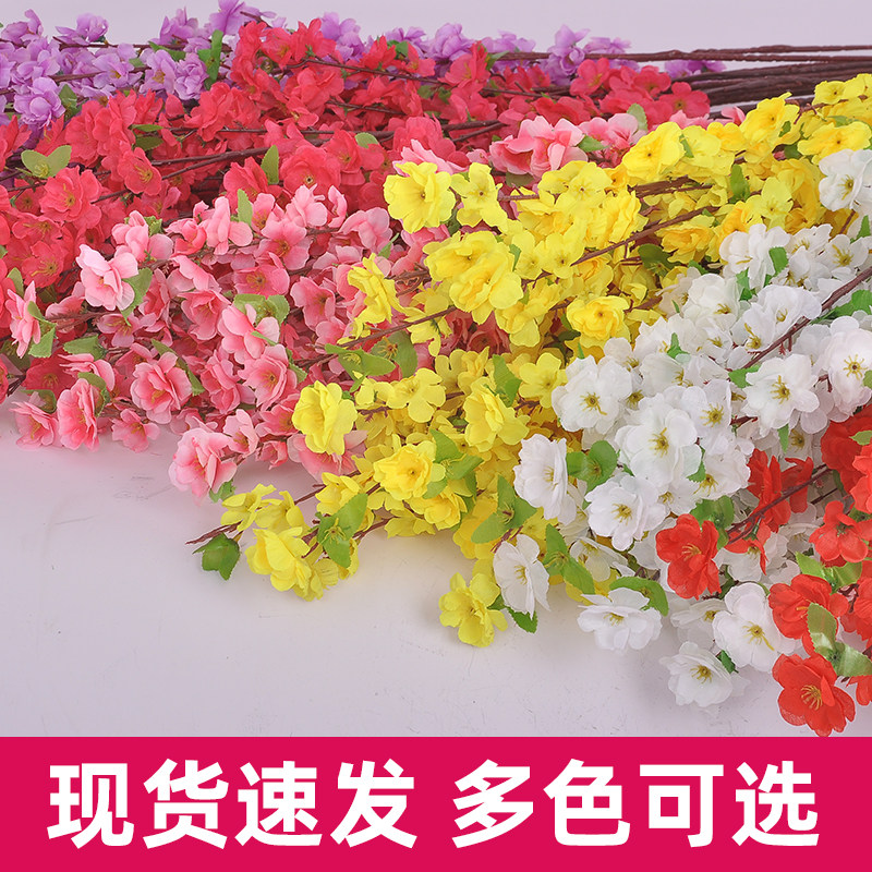 仿真桃花枝假花客厅摆件室内塑料绢花假树干花樱花腊梅花造景装饰