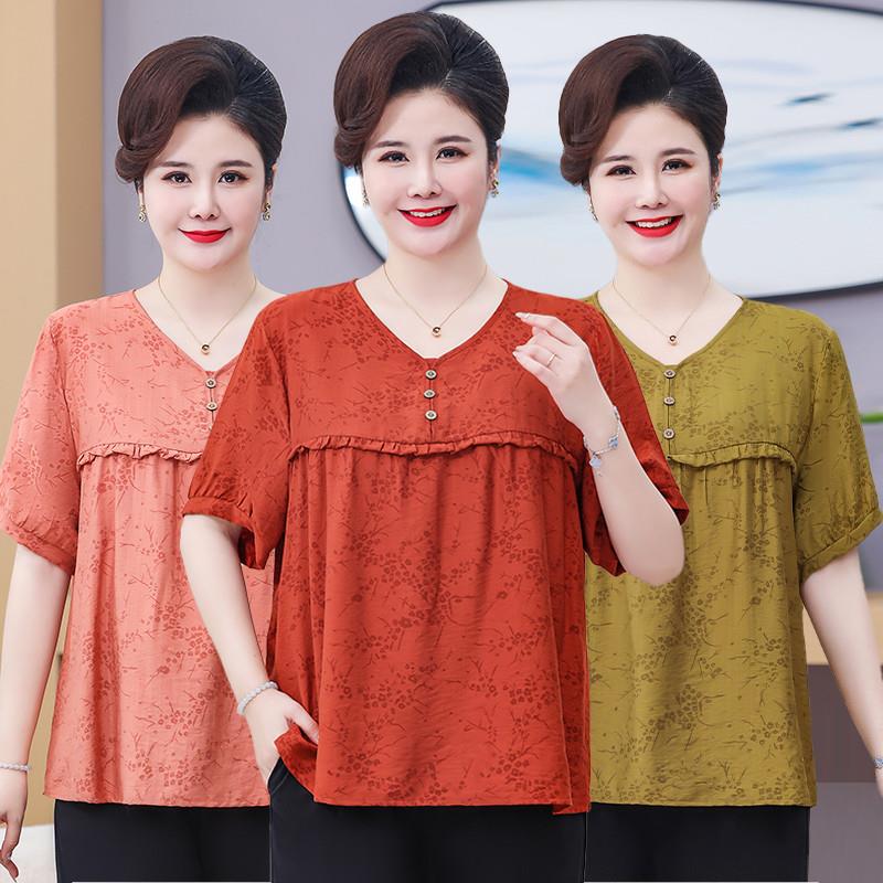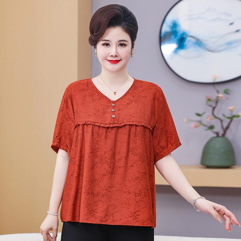 中老年宽松加大码200斤棉麻遮肚打底衫胖妈妈夏季短袖时尚女装T恤