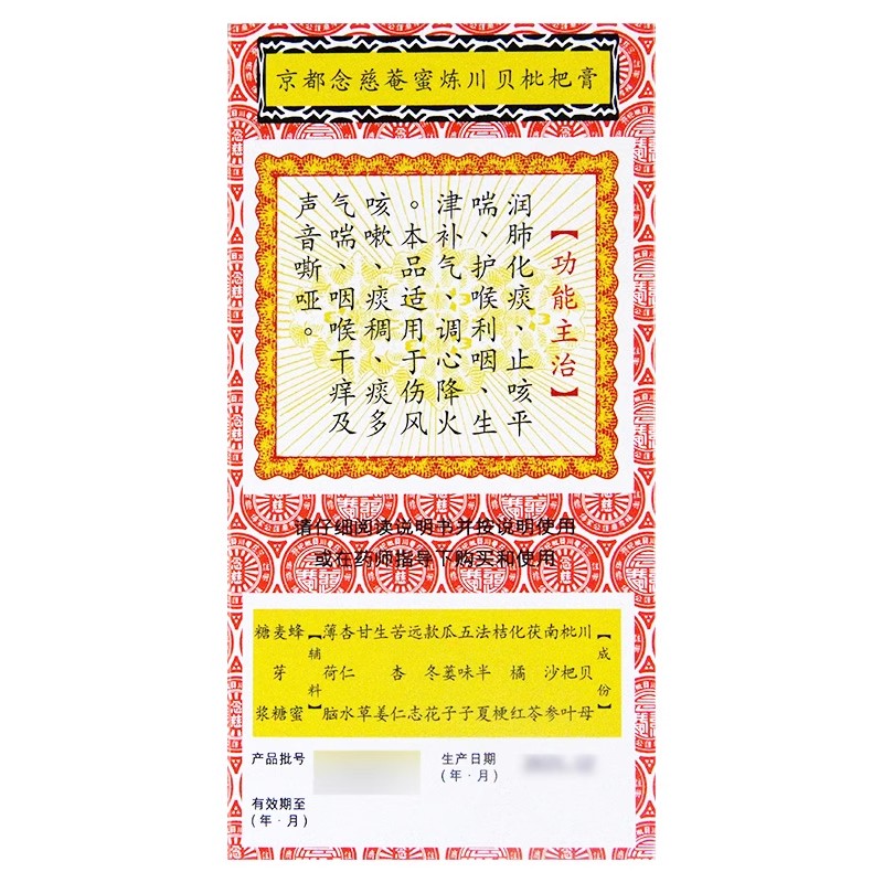 京都念慈菴蜜炼川贝枇杷膏300ml化痰止咳嗽咽喉干痒痰多药念慈庵