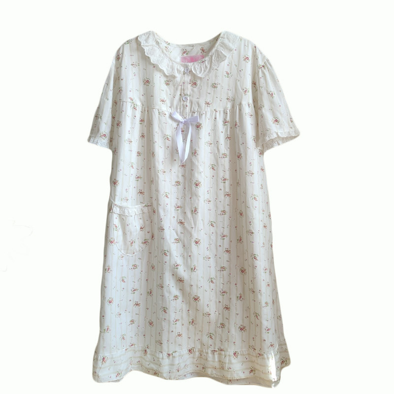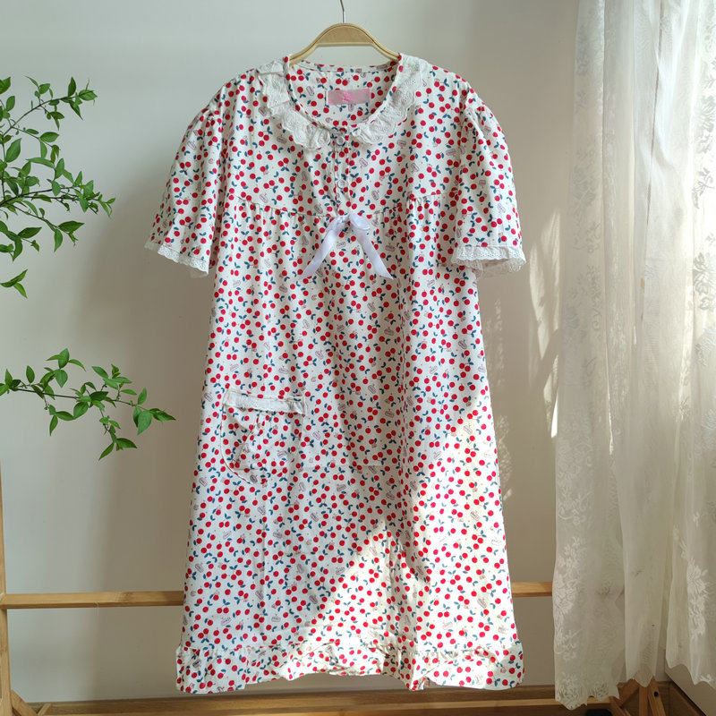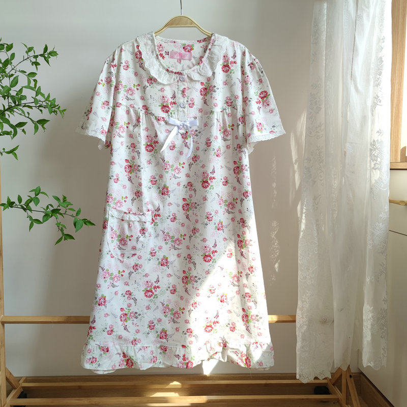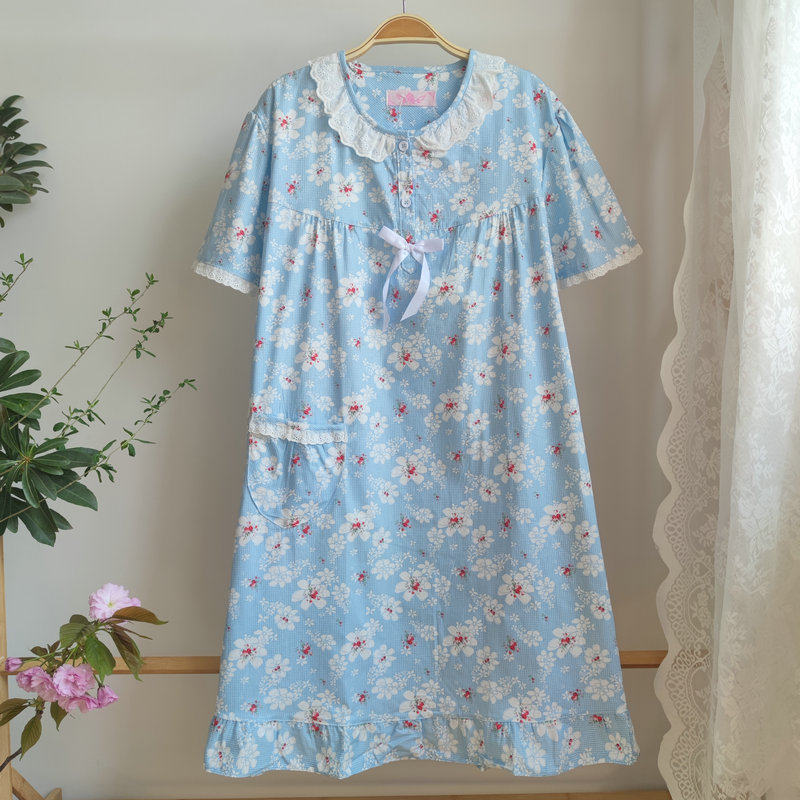 纯棉睡裙清爽小碎花女夏季薄款中长款睡衣家居服大码妈妈全棉短袖
