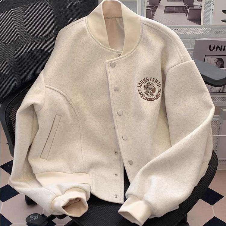 少女感满满!小香风棒球服毛呢外套女春秋宽松飞行员夹克开衫上衣
