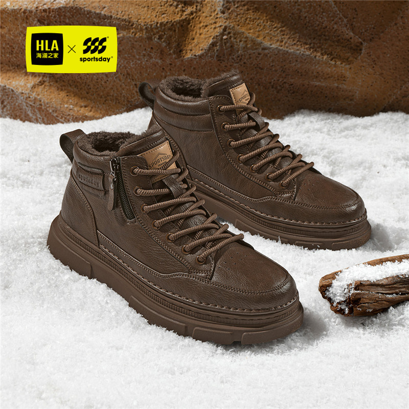 HLA/海澜之家男鞋2026新款加绒休闲鞋男士保暖防寒大码户外工装鞋