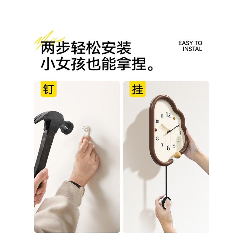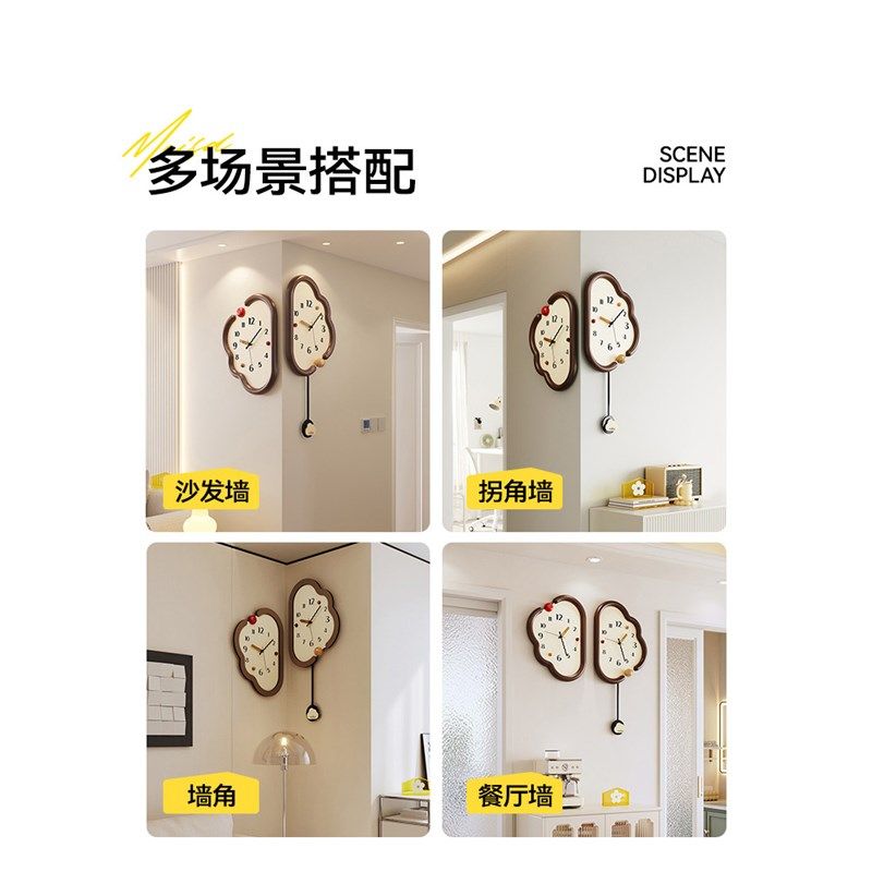 精选美世达云朵挂钟客厅2025新款简约现代转角时钟创意双面钟表挂
