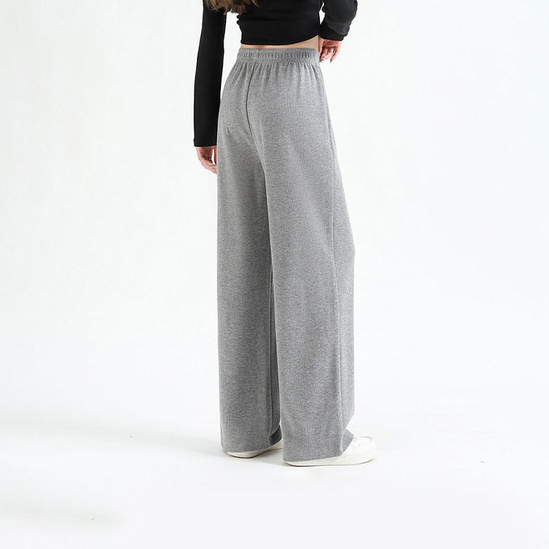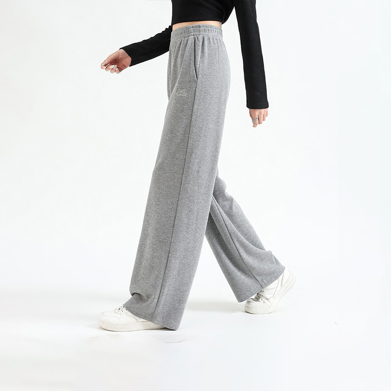 热风女士刺绣运动阔腿直筒卫裤秋冬女款微弹宽松显瘦百搭垂感长裤