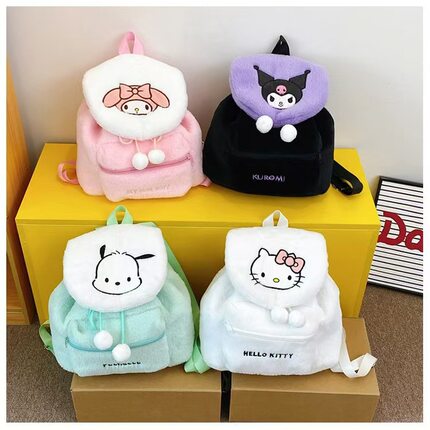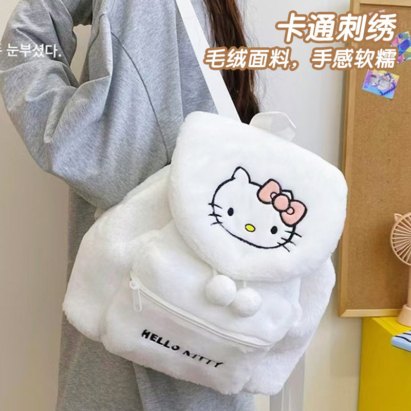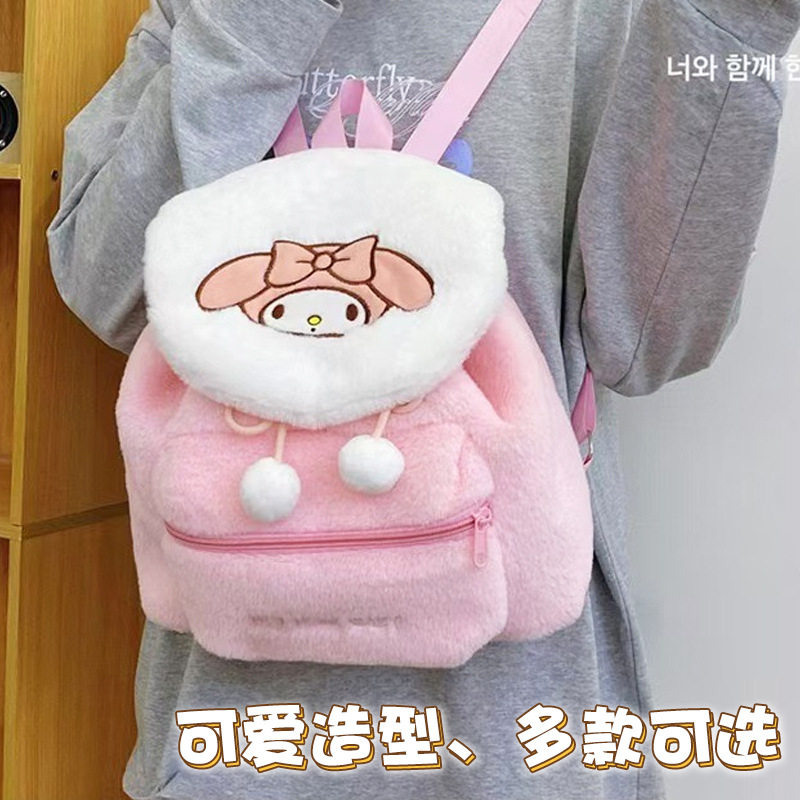 可爱毛绒包翻盖大容量背包新款秋冬甜美双肩包儿童女生玩具零钱包