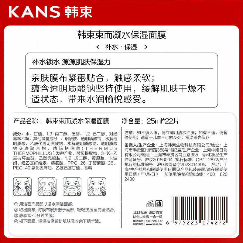 韩束面膜玻尿酸补水保湿提亮肤色改善暗沉男女士专用官方正品