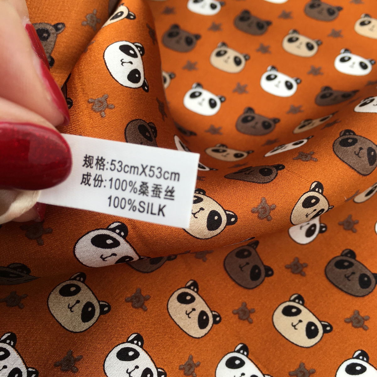 杭州丝绸女秋季百搭小领巾围巾超萌熊猫真丝桑蚕丝丝巾53cm小方巾