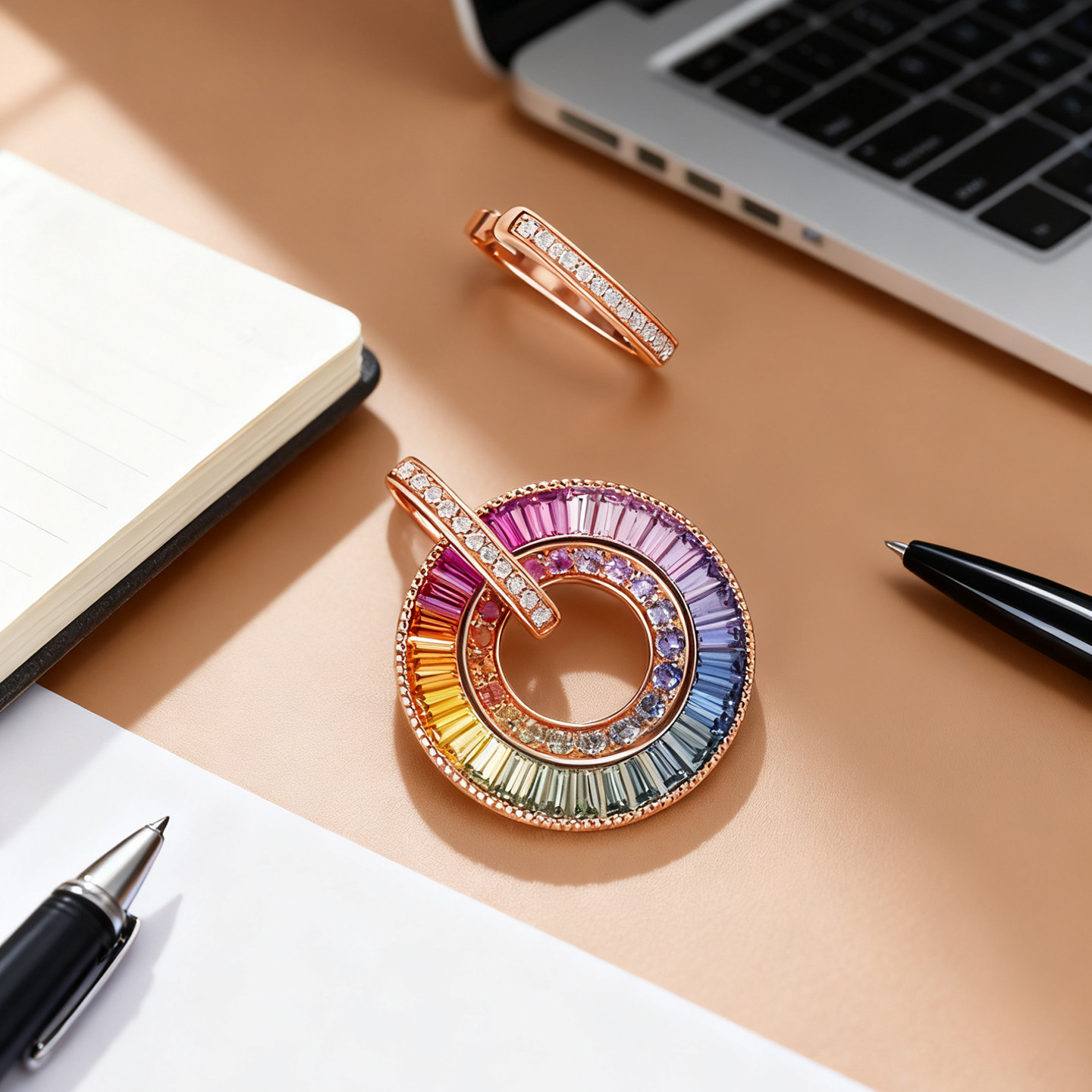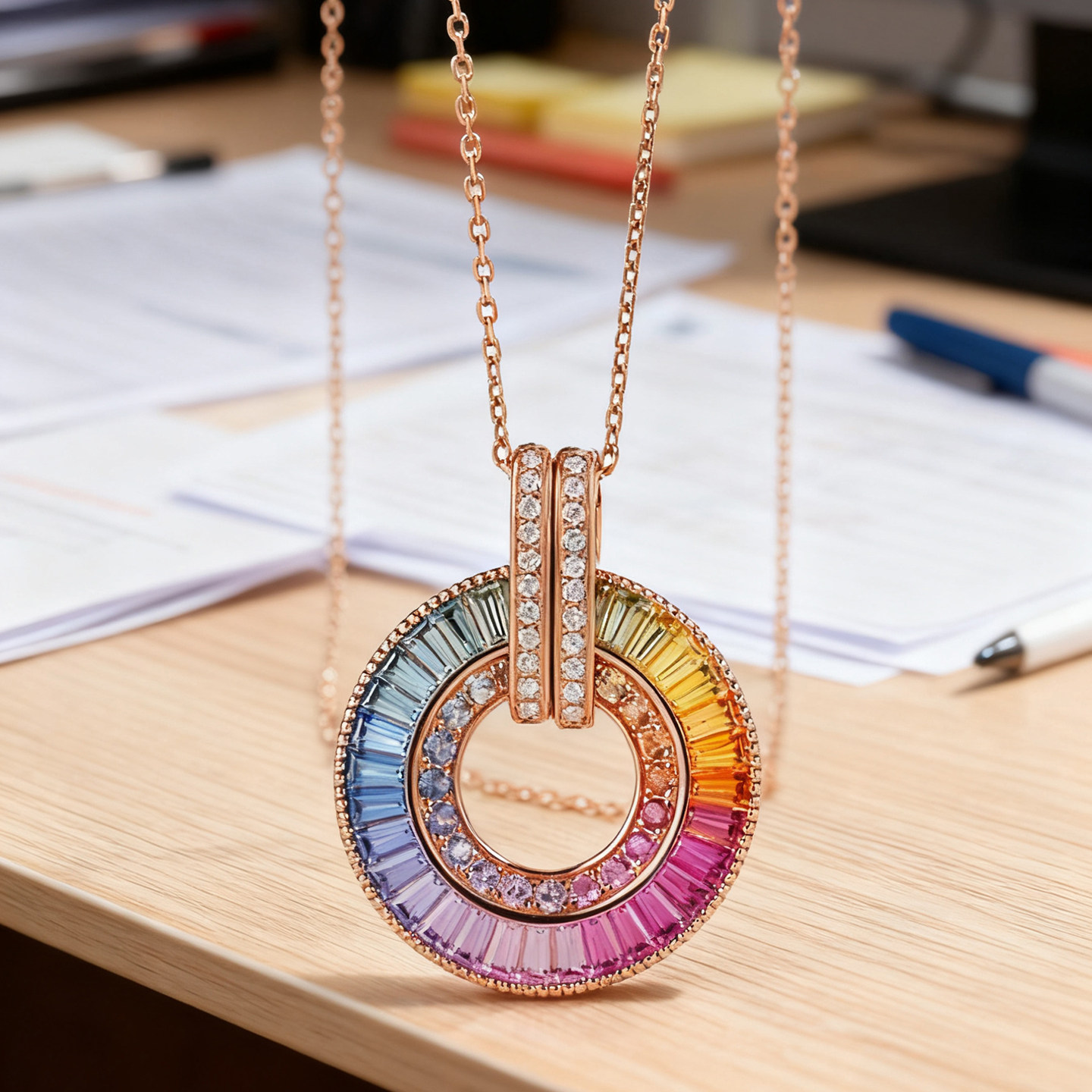 私意珠宝 2.23克拉天然彩宝彩虹蓝宝石吊坠18K金钻石首饰时尚项链