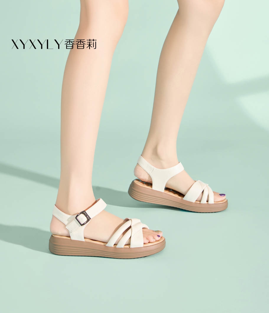 香香莉女鞋2025夏季新款时尚百搭舒适露趾平跟软底妈妈凉鞋30190