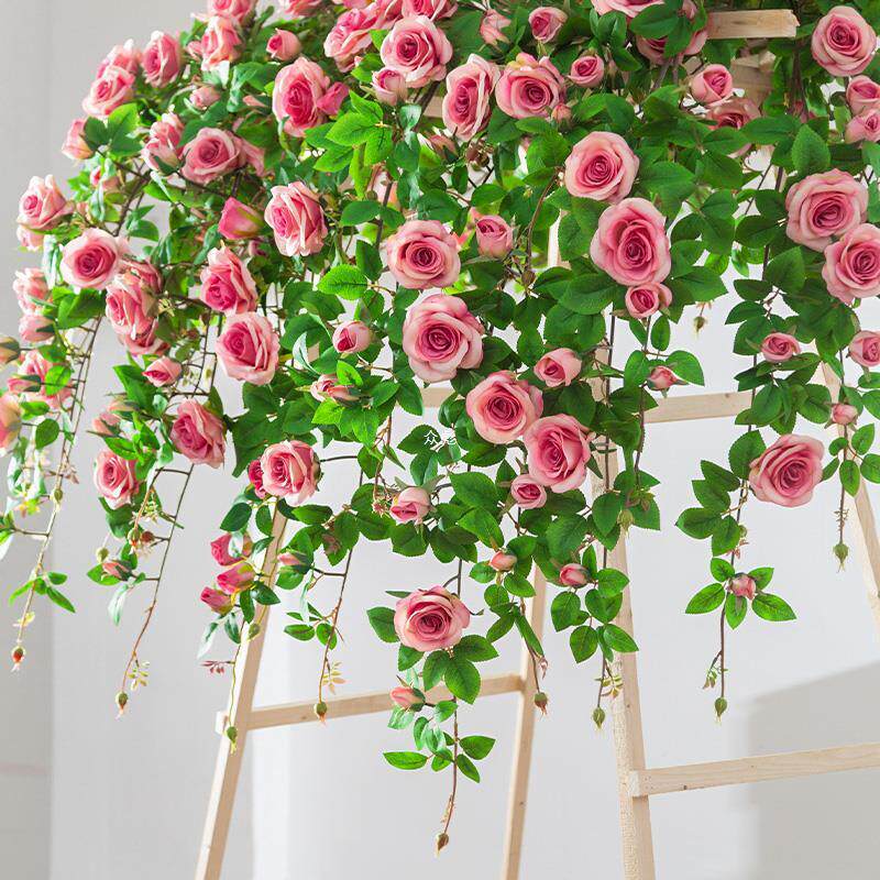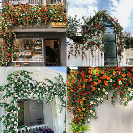 奥格斯仿真玫瑰花藤高档假花藤条墙面爬藤藤蔓婚庆网红墙装饰造景