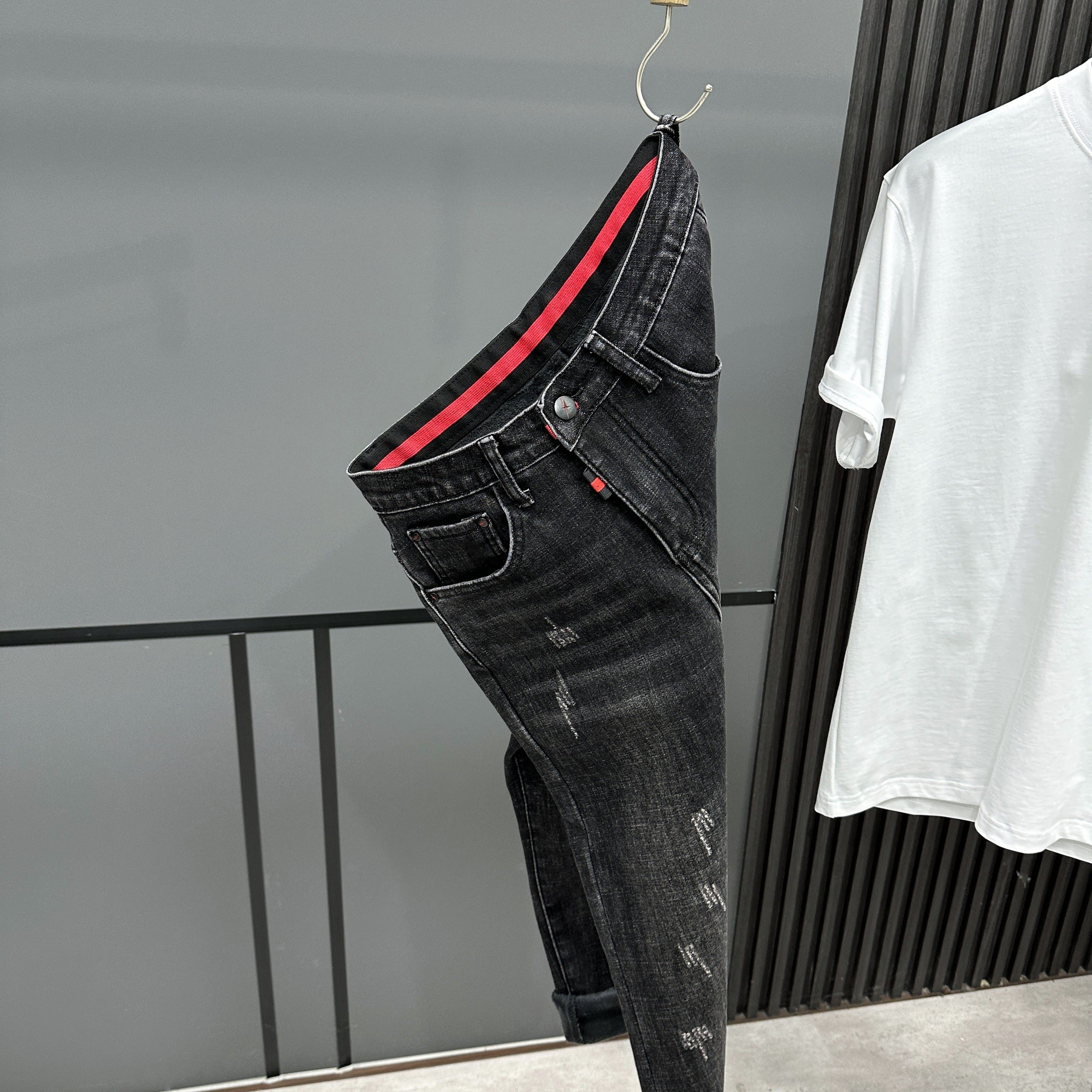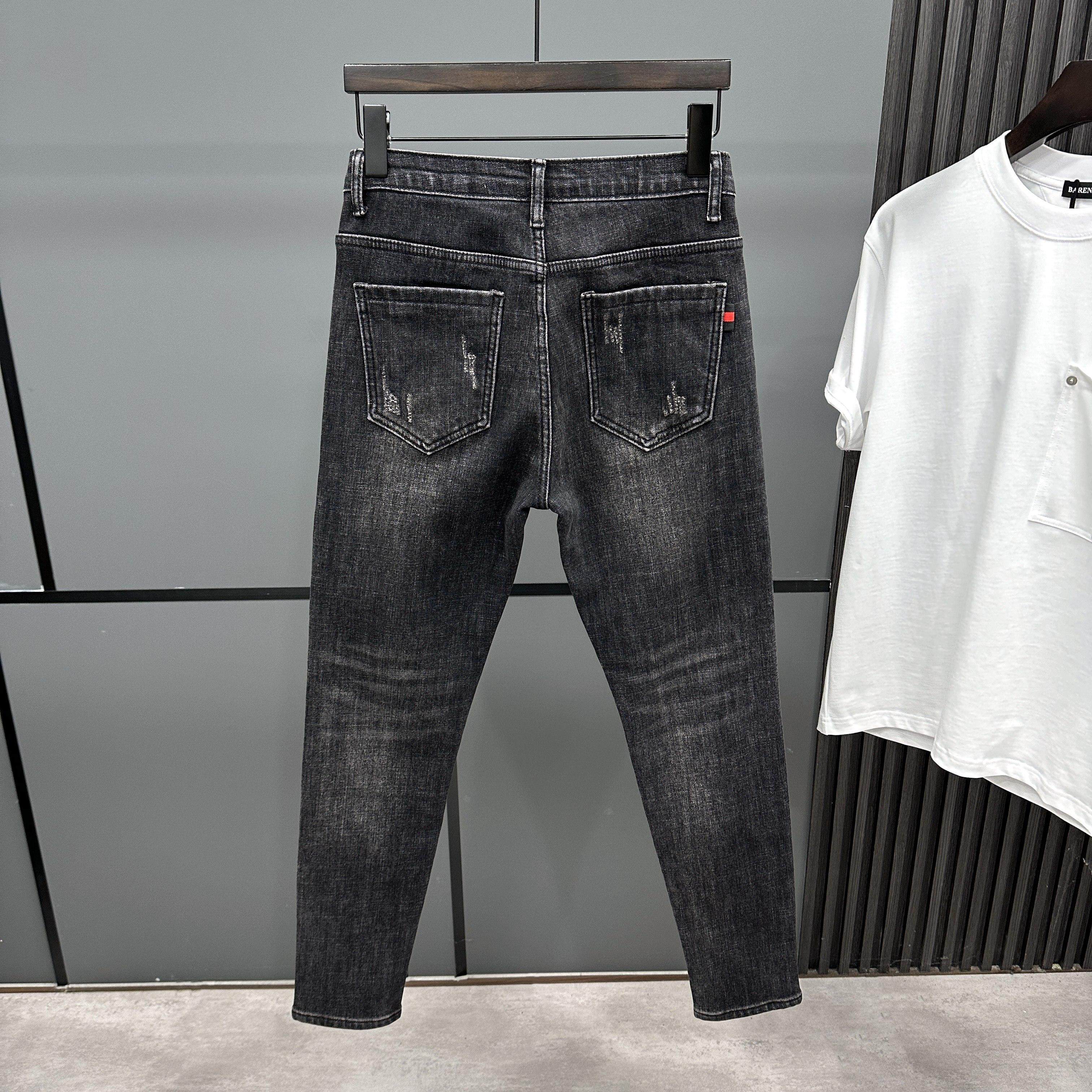 加绒加厚保暖水洗复古黑色牛仔裤