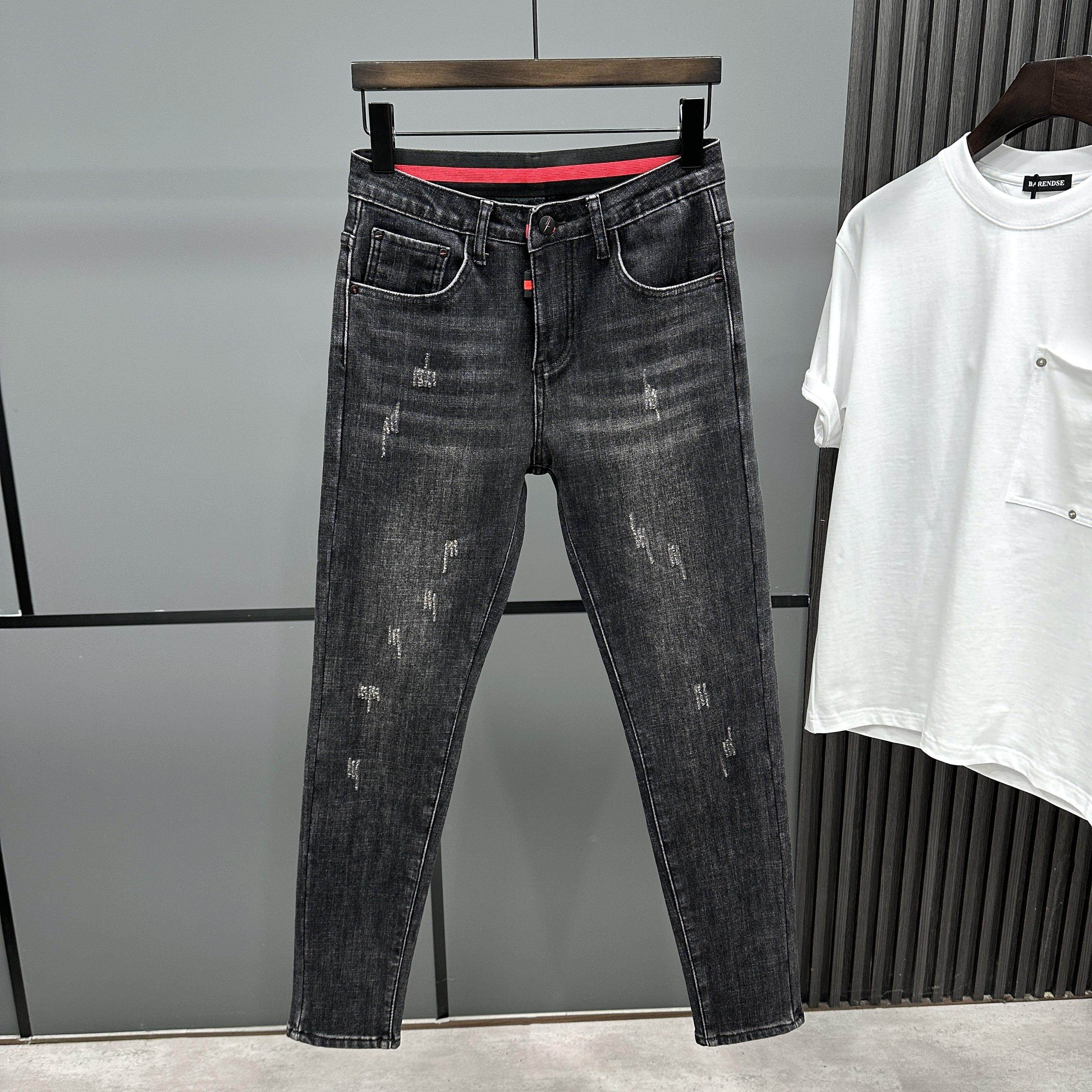 加绒加厚保暖水洗复古黑色修身小脚九分牛仔裤潮男冬弹力休闲长裤