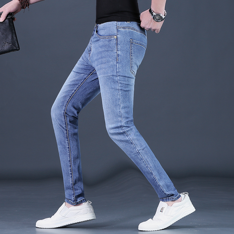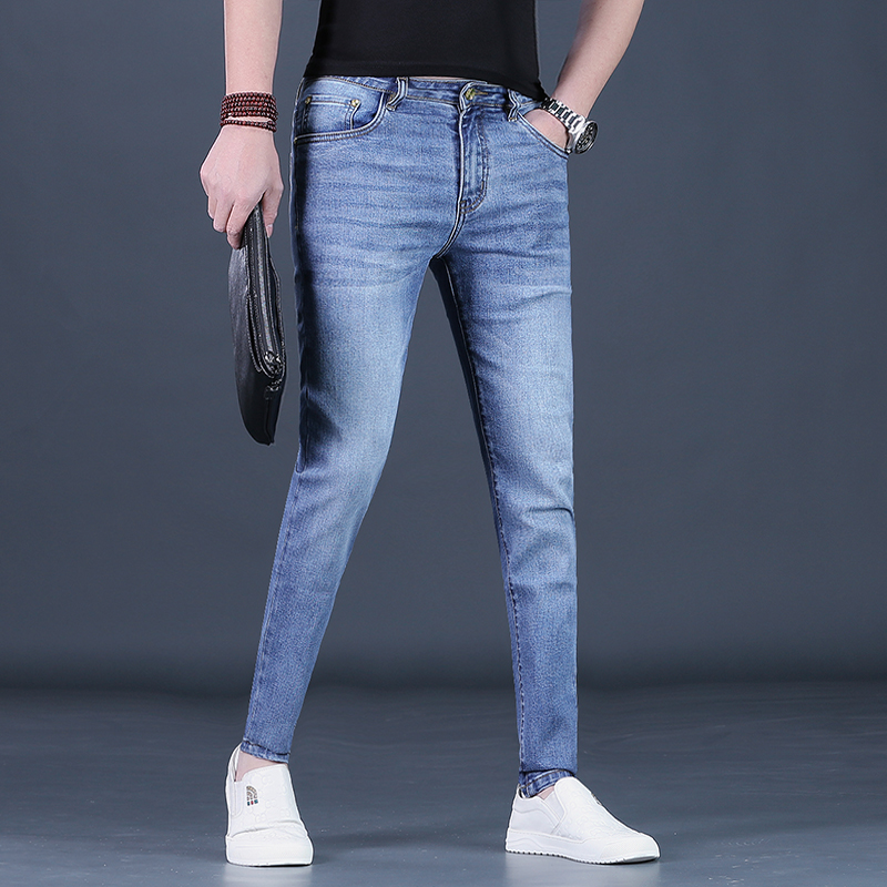 25新款牛仔裤男士春夏潮流弹力修身小脚浅蓝色薄休闲长裤潮牌男裤