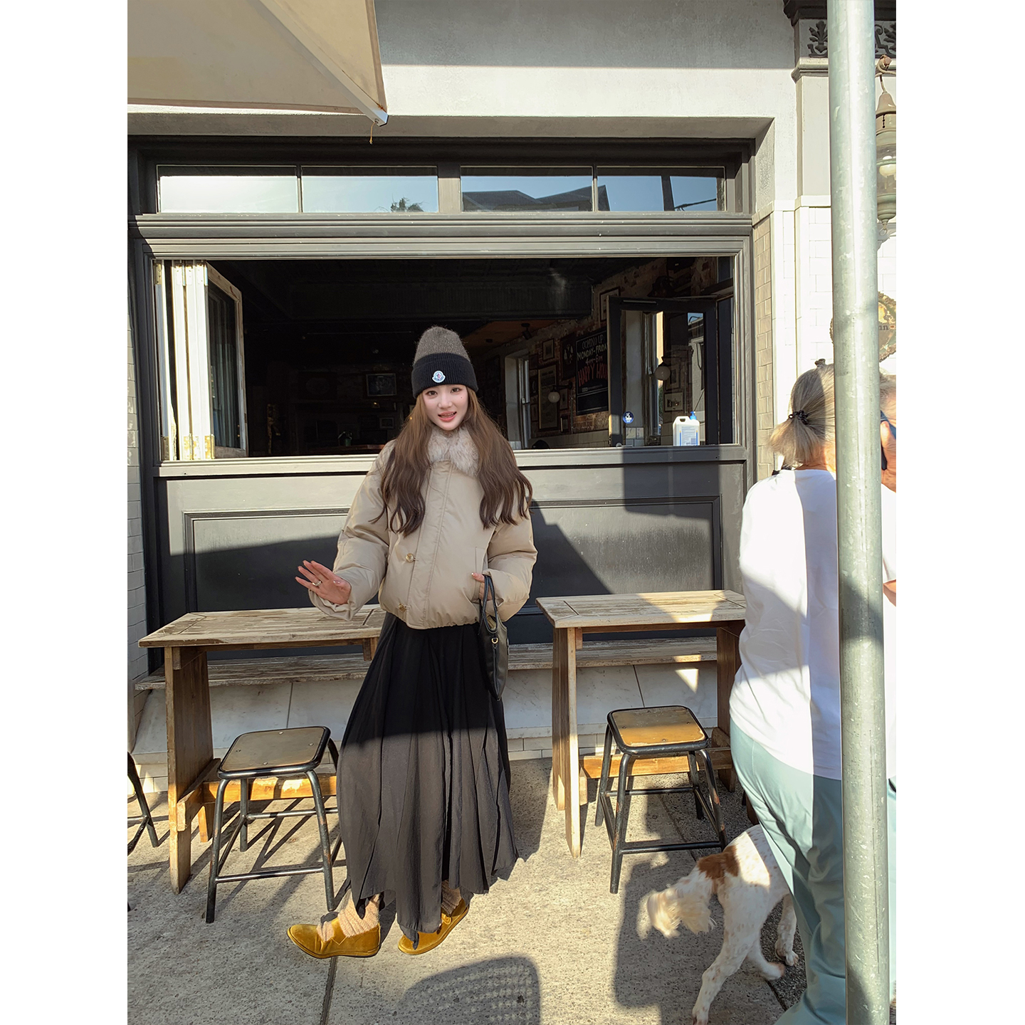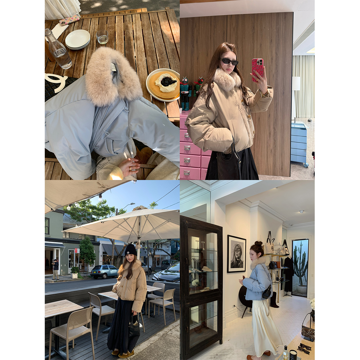aaaaxbbb 卡斯托镇 两色狐狸毛领羽绒服通勤显瘦韩系短款外套秋冬