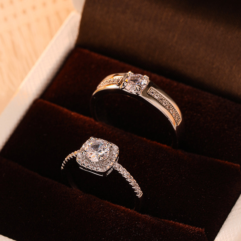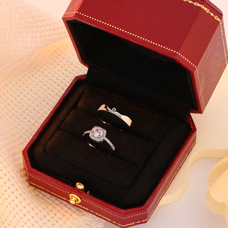 60分方形仿真钻戒结婚对戒活口一对可调节戒指婚礼求婚仪式用道具